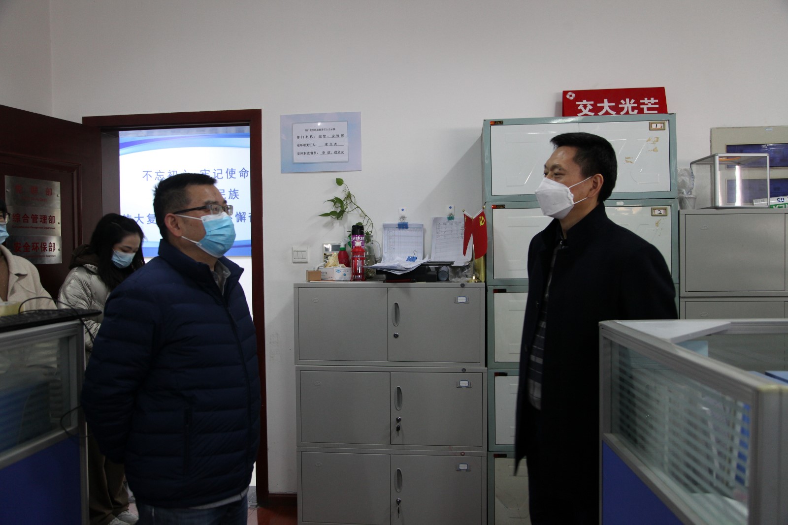 11月16日,红桃视频 党委副书记、工会主席冉兰平带队,采用“四不两直”的方式对交大光芒疫情防控工作进行了督导检查。