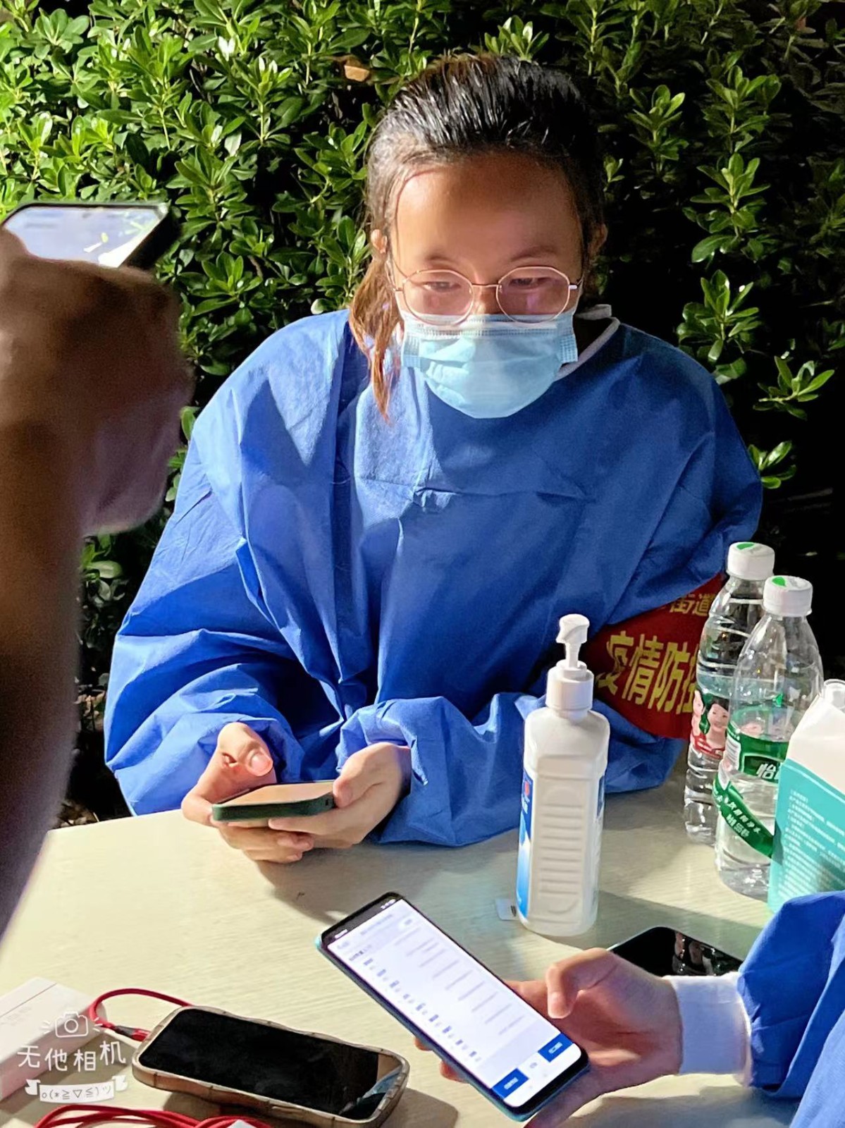 闻疫而动,向“疫”而行。熊懿佳是公司所属川投电力一名党员, 9月1日当天下班回家的她来不及换下工装,直接套上“红马甲”,第一时间变身志愿者。经过简要的现场培训后开始在核酸检测点、小区出入关卡等十几个点位循环工作,汗水浸湿全身,手套换了又换,频繁的酒精消毒把手泡得发白褶皱。平日里爱美的她却毫不在意,“成都疫情没有结束,我的脚步就不会停歇。作为一名能源人,我就是要在抗疫前线发出最耀眼的一抹光!”