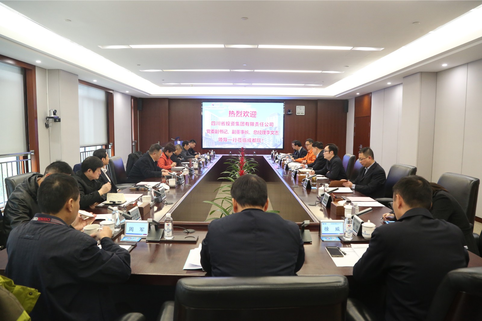 何彦锋首先对李文志一行的来访表示欢迎,并对川投集团长期以来对成都院建设发展的关心和帮助表示感谢。何彦锋表示,成都院将持续深化与川投集团的“历史友谊”,继续发挥在清洁能源领域规划设计的领先优势和全产业链一体化综合实力,与川投集团齐头并进,以更快的速度、更显著的成效将合作向纵深推进,携手立足四川、辐射全国。