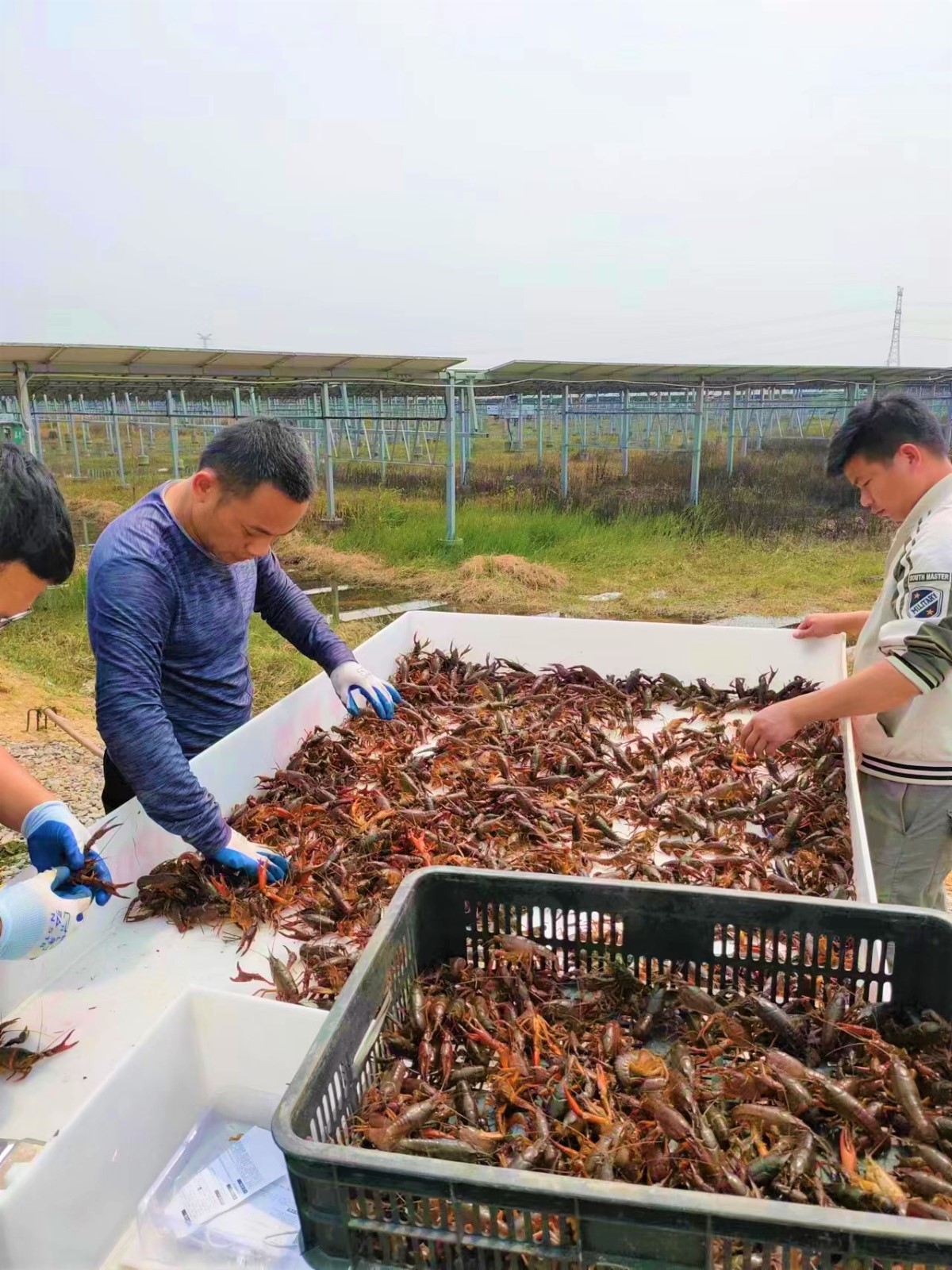 “我之前一直在广东打工,现在政府、企业、村委招商引资政策特别好,很有发展潜力,所以我回来在光伏场内搞小龙虾养殖项目。小龙虾的销售也特别好,主要销往广州、南京、上海等各大城市,供不应求,完全不担心销不出去!现在我养的小龙虾最大的个头能达到一两半,批发价也能到每斤75-80块,我对养小龙虾很有信心。”广西新恒港生态农业科技有限公司负责人说道。