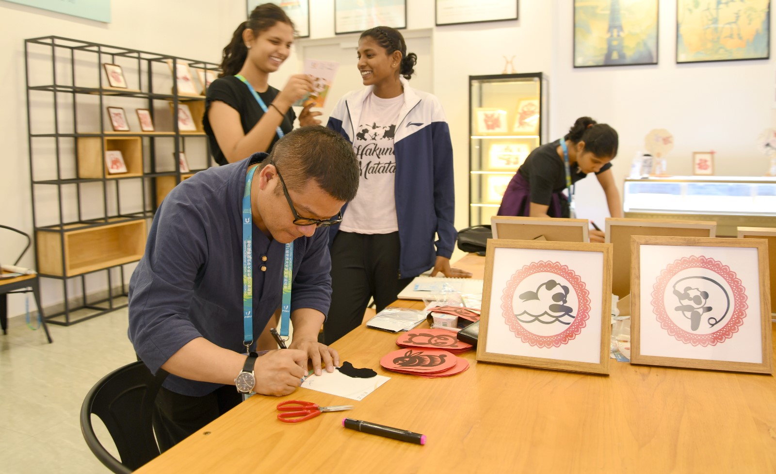 8月8日傍晚,第31届世界大学生夏季运动会在成都圆满落幕。大运会期间,红桃视频 员工庄丛灿应组委会邀请,担任大运会文化和教育活动专员。作为大运村非遗体验中心剪纸项目指导老师,庄丛灿为100多个国家逾1000名运动员带来四川非遗代表性项目——剪纸文化,各国运动员通过亲自动手,在体验地道巴蜀韵味间,感受优秀中华传统文化的强大魅力。