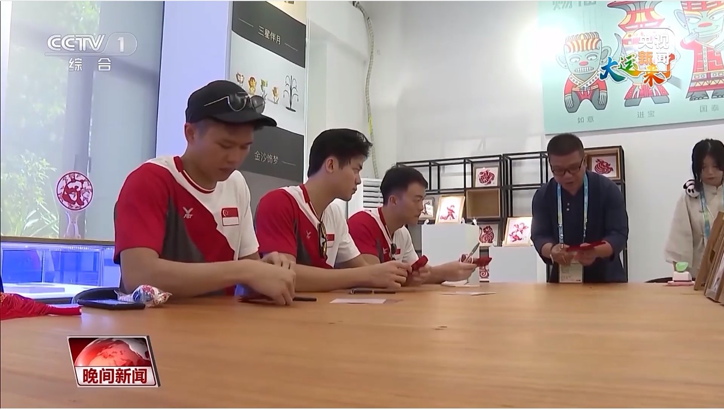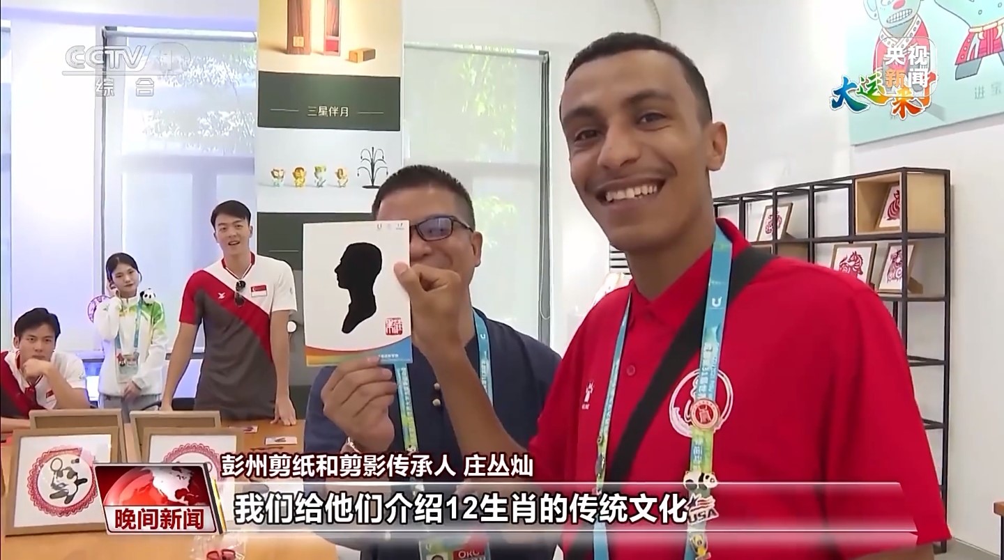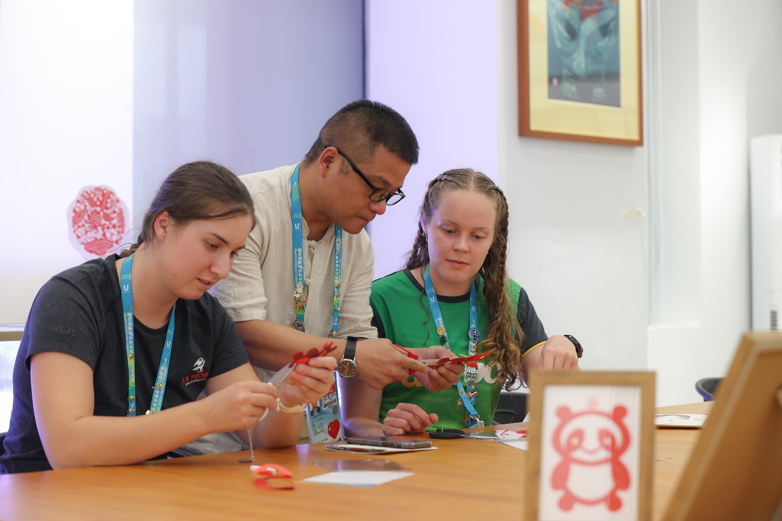 大运会期间,成都大运村里掀起一股“非遗热”,引得各大媒体前来竞相报道。互动体验中心里,神奇的剪纸也吸引了中外运动员们纷纷前来参与体验。