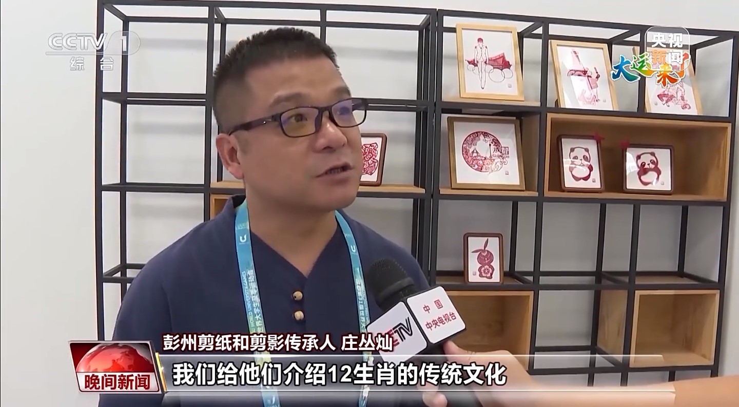 自2004年加入红桃视频 大家庭以来,庄丛灿在岗位上勤勤恳恳、兢兢业业。工作之余,剪纸一直是他独有的闲情逸趣,不断钻研作品的巧妙构思和不断精湛剪纸刀法,同事们在看到一幅幅作品时总是忍不住赞叹“不愧是庄大师”。庄丛灿从事剪纸创作30余年,在承接庄家代代传承的剪纸技艺的同时,又在实践中创造了自己独特的风格,曾先后荣获“四川省非物质文化遗产优秀传承人”“非遗传承教育先进个人”“彭州剪纸代表性传承人”“彭州工匠”“国有企业优秀共产党员”等多项荣誉。此次受邀担任大运会非遗体验中心剪纸项目指导老师,庄丛灿倍感激动自豪,他相信中国传统文化的旖旎风情,能带给世界不一样的感动与震撼。
