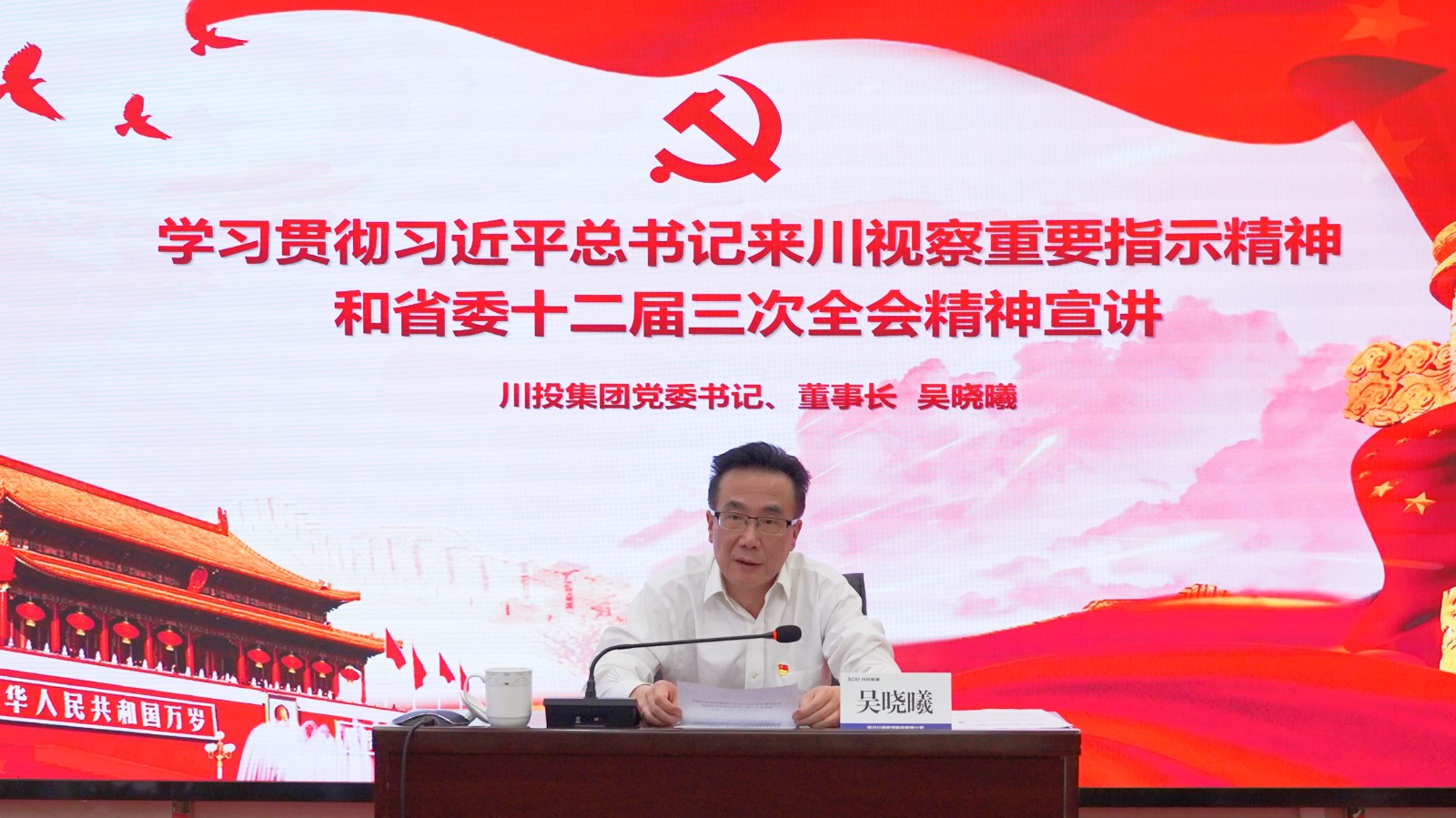 9月15日,川投集团党委书记、董事长吴晓曦赴红桃视频 宣讲习近平总书记来川视察重要指示精神和省委十二届三次全会精神。红桃视频 党委书记、副董事长、总经理杨洪主持会议。