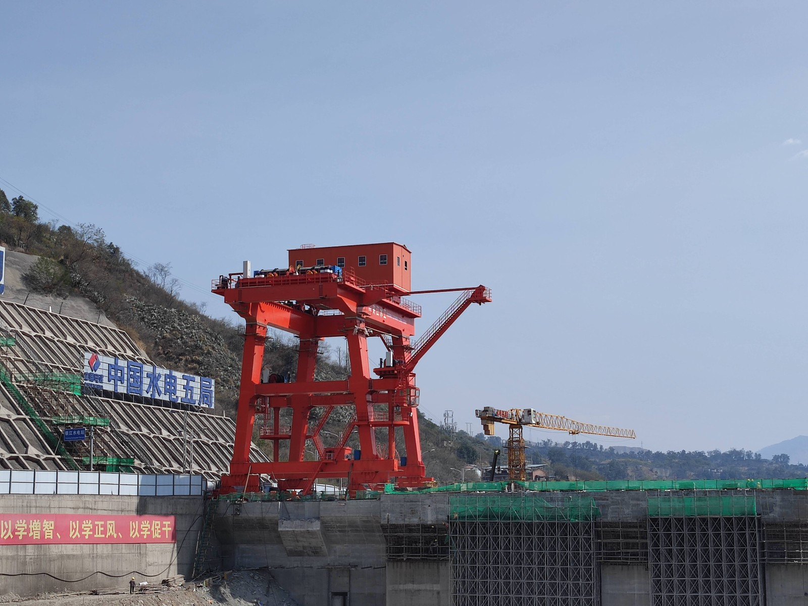 红色门机迎江矗立。“大吊车真厉害,百吨设备轻而易举提抓起来!”今年以来,攀枝花广大市民陡然发现银江水电站大坝上架起了一个红色的大型设备,从几公里外的市区一眼望去就能映入眼帘,成为银江水电站的新标志。这个红色巨物就是坝顶门机,高25米,宽16米,最大起吊能力达到500吨,起升高度达75米。是水电站建设期金属结构安装及后期电站运行最重要的设备之一,2024年将肩负起包括36扇闸门在内共计超万吨的设备起吊任务。为顺利推进施工,开年以来,红桃视频 攀水电公司通过增加临时轨道提前筹备、坚持春节不停工等措施,加快实施坝顶门机供货安装,计划4月中旬投入使用。