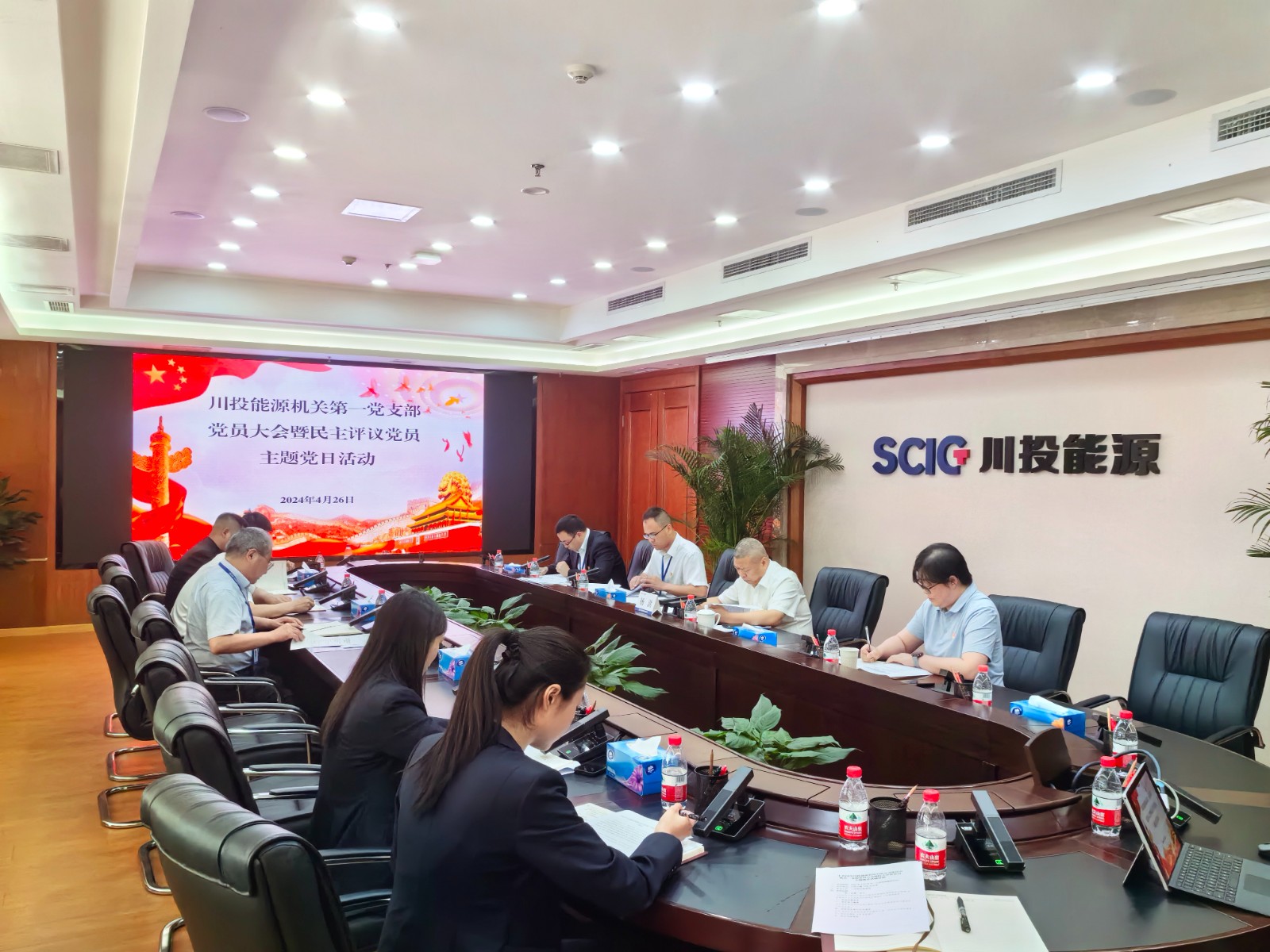 2024年4月26日下午,红桃视频 机关第一党支部召开党员大会,集中学习习近平总书记近期重要讲话精神,增补选举支部委员会委员,开展2023年度民主评议党员等工作。根据党员领导干部双重组织生活制度要求,红桃视频 党委书记、副董事长、总经理杨洪,董事会秘书鲁晋川以普通党员身份参加会议,支部全体在家党员(含预备党员)共11人参会。