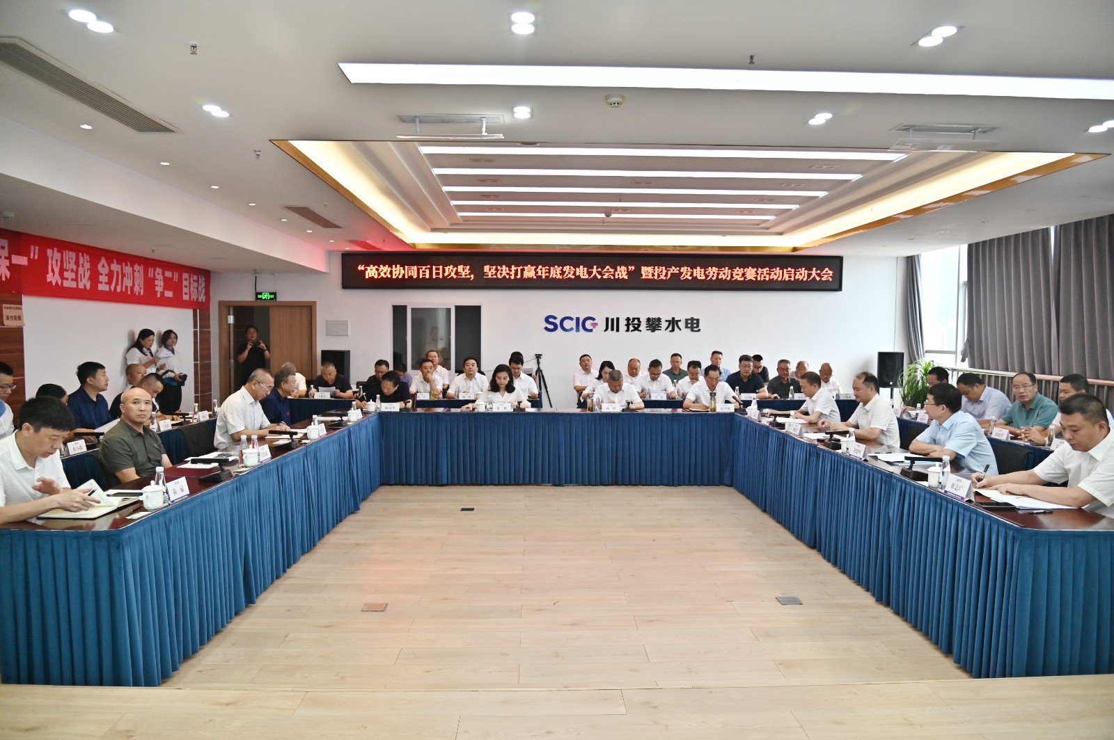 为深入学习贯彻习近平新时代中国特色社会主义思想,把党的二十届三中全会精神成效转化为推动银江水电站工程建设的重要举措,7月31日,攀水电公司组织召开了“高效协同百日攻坚 坚决打赢年底发电大会战”暨投产发电劳动竞赛活动启动大会。川投集团党委委员、职工董事、工会主席朱莉出席会议并讲话,红桃视频 党委书记、副董事长、总经理杨洪,主要参建单位长江设计集团、贵阳院、水电五局、水电七局、广东源天后方领导及银江项目部负责人参加会议,红桃视频 副总经理、攀水电公司党总支书记、董事长徐孝刚主持会议。