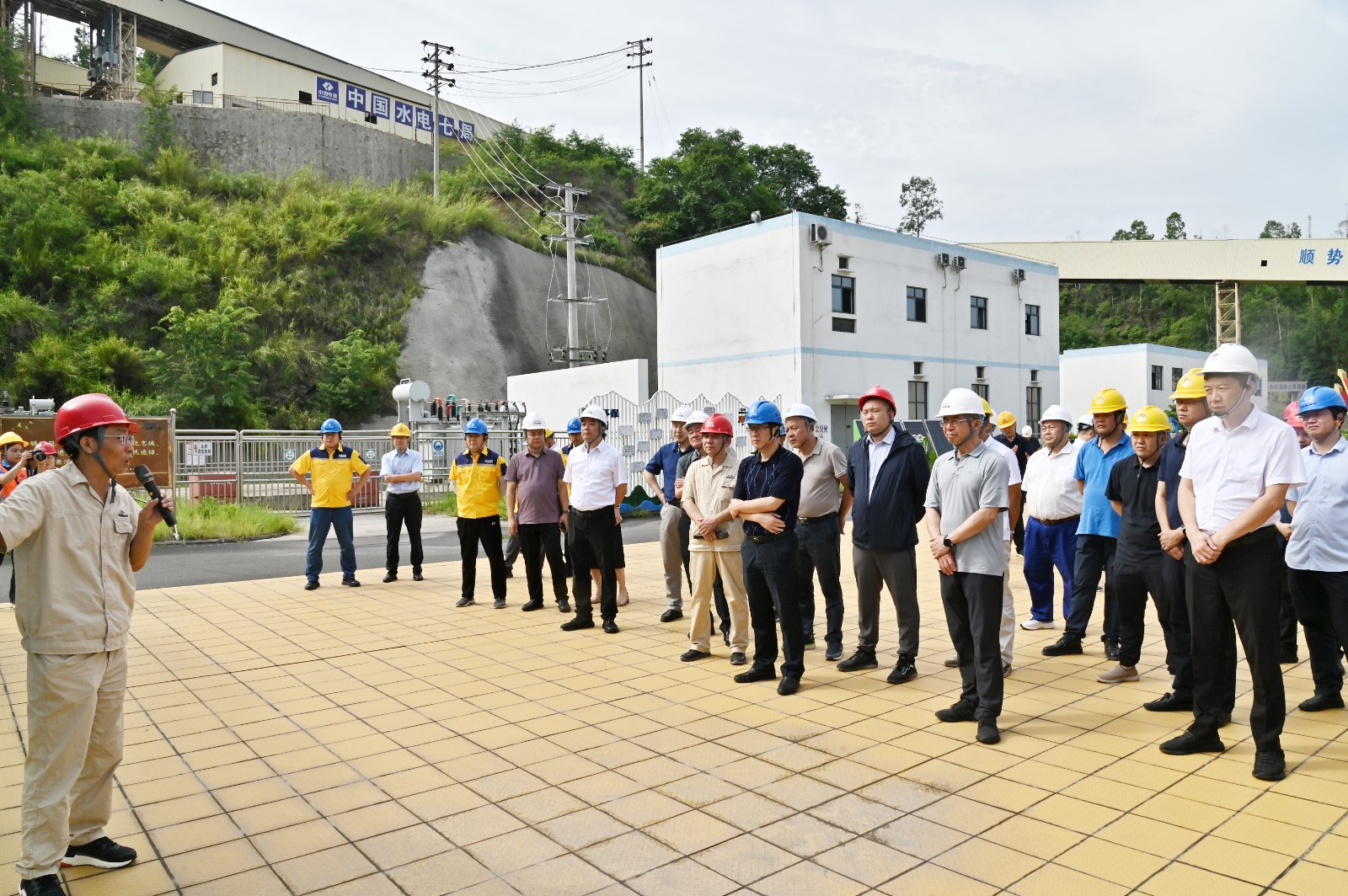会前,与会人员赴银江水电站观景平台、上游围堰、坝顶、安装间、下游交通桥等部位进行实地踏勘,并听取了工程建设、机电安装、安全环保、防汛减灾、应急值守等情况汇报。