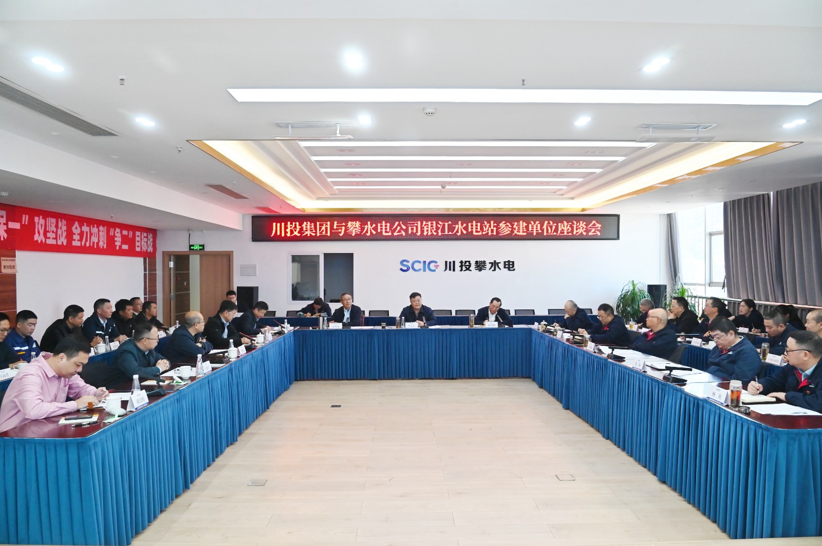 长江设计集团高级咨询、银江项目总工汪庆元,水电五局党委委员、副总经理李法海,贵阳院/监理公司党总支书记、副总经理石志勇,水电十四局建筑工程公司副总经理王建平,广东源天西南公司党支部书记、总经理谢良校及攀水电公司领导班子成员、相关人员参加会议。