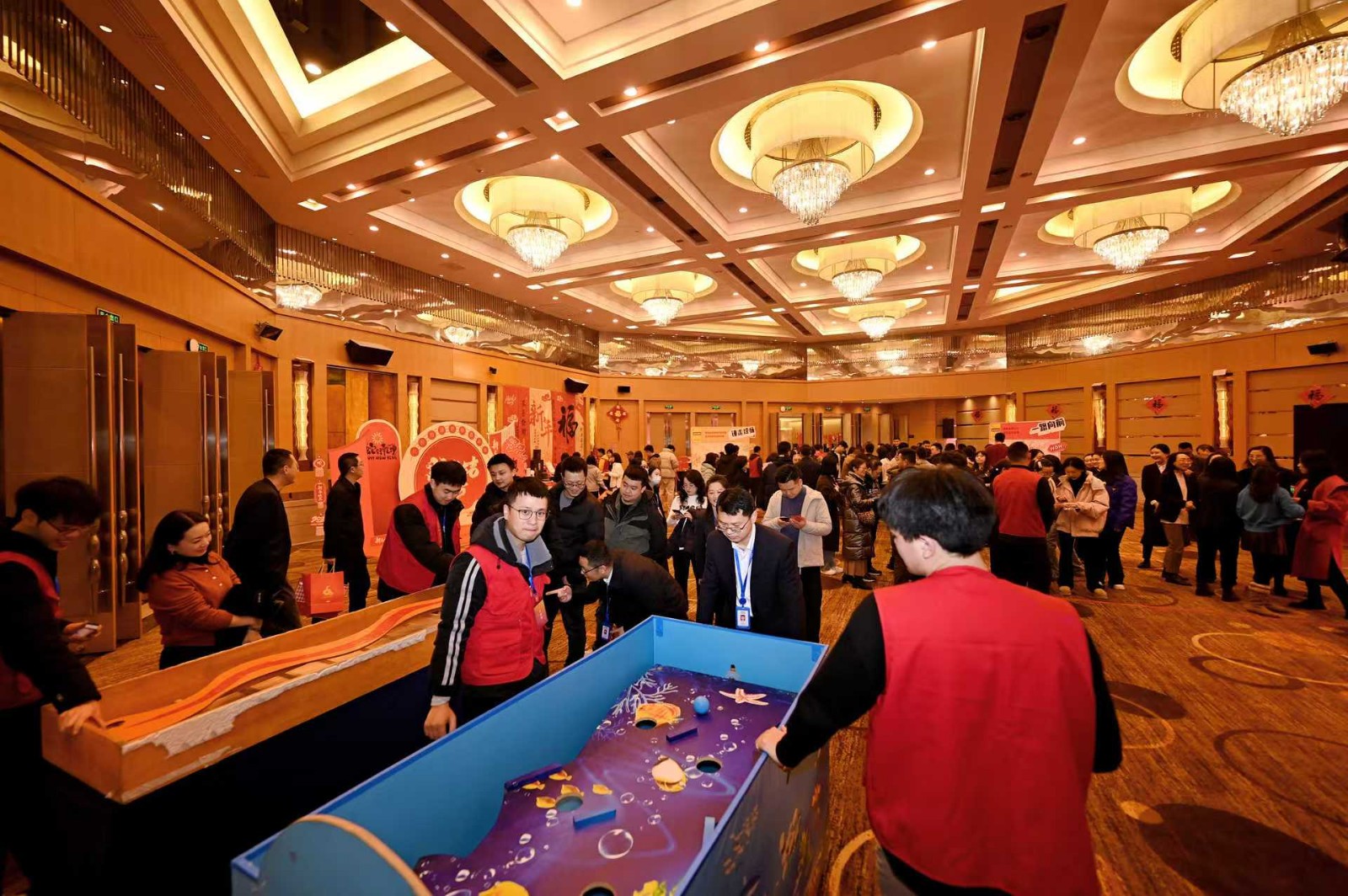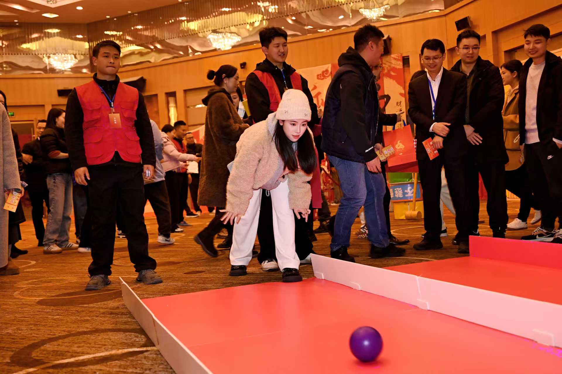 一路向前区,职工们轮流上阵,用力掷出保龄球,体验运动的乐趣与激情;锤走烦恼区,职工们通过敲击“烦恼圈”,释放压力,享受智慧与技巧的碰撞 ;蛇舞新春区,参赛者屏息凝神,用尽全力推动小球,看它在赛道上蜿蜒;拼出未来区,只见每位职工选手抱着不同颜色和形状的“方块”,构建图案并迅速完成拼装。