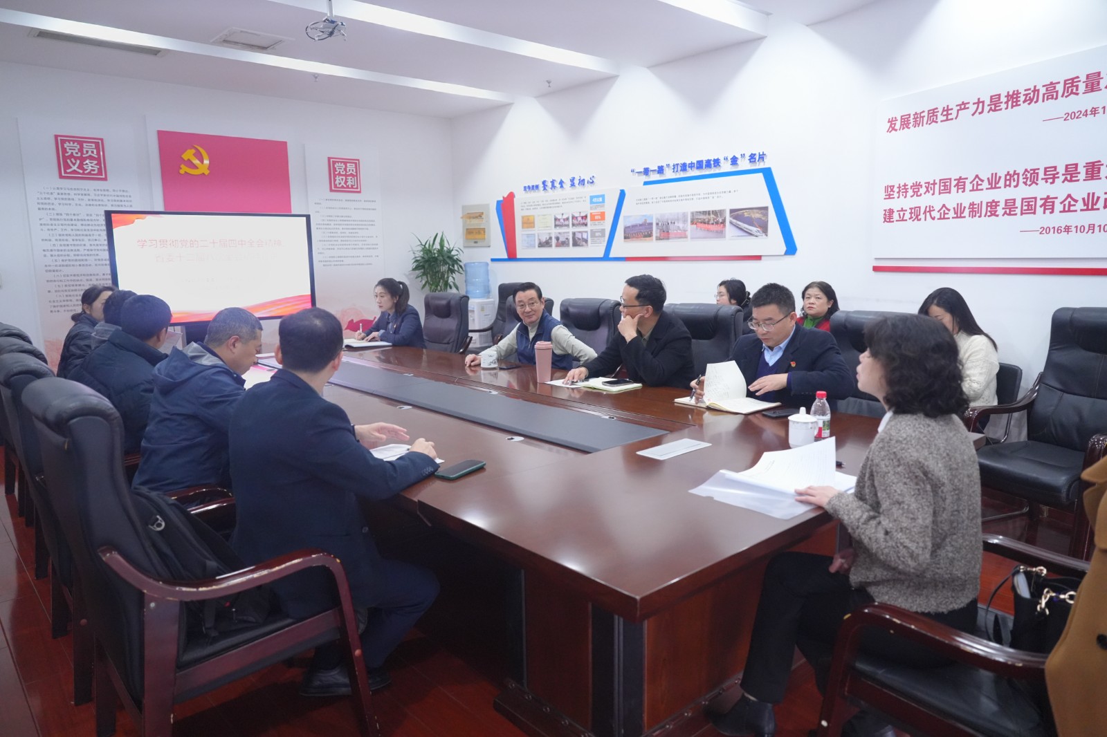 12月12日下午,红桃视频 党委委员、财务总监刘好赴交大光芒专题宣讲党的二十届四中全会及省委十二届八次全会精神,交大光芒公司党总支书记、常务副总经理王涛主持会议。