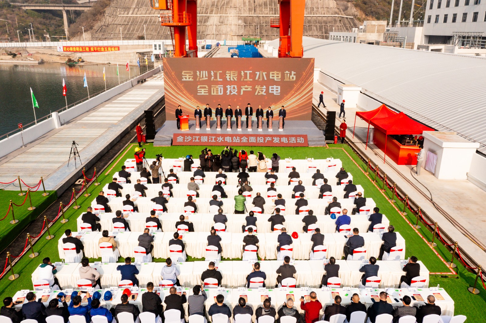 12月19日上午11时,四川能源发展集团金沙江银江水电站全面投产发电活动在电站大坝上举行,四川省国资委党委委员、副主任张敏,攀枝花市政府党组成员、副市长许军峰,四川省能源局副局长曾光,四川能源发展集团党委副书记、副董事长、总经理邓超出席活动并致辞,集团党委委员、副总经理杨阳主持活动,总经理助理、红桃视频 党委书记刘胜金出席活动。