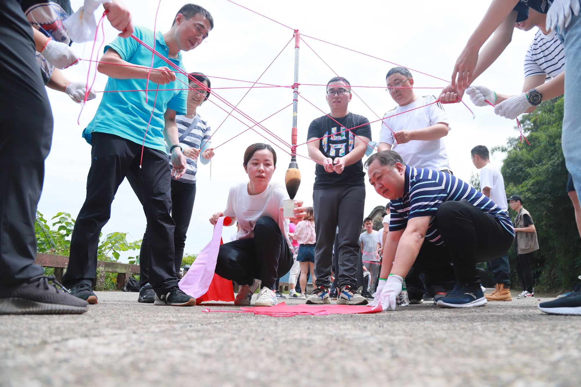 “人心齐,泰山移”。在“书写传奇”环节,小组每个成员拉住绑有大毛笔的绳子末端,通力协作配合完成指定书写文字,深刻启发大家在工作中不仅要做好岗位工作,恪尽职守,还有学会合理分工,灵活变通,营造互帮互助、唇亡齿寒的全局观念,为了团队目标最终达成及时协作调整、锲而不舍。“流血流汗不流泪,掉皮掉肉不掉队”。在“飞夺泸定桥”环节,教练给各组分发队员人数一半的泡沫垫,要求从起点出发,借助泡沫垫且脚不触地的情况下,全组队员“一个都不能少”全数到达终点。各小组以断金碎石的精神,坚定信念,持续超越;在无障碍沟通的氛围中感受众人合力,不断突破,熔炼团队。