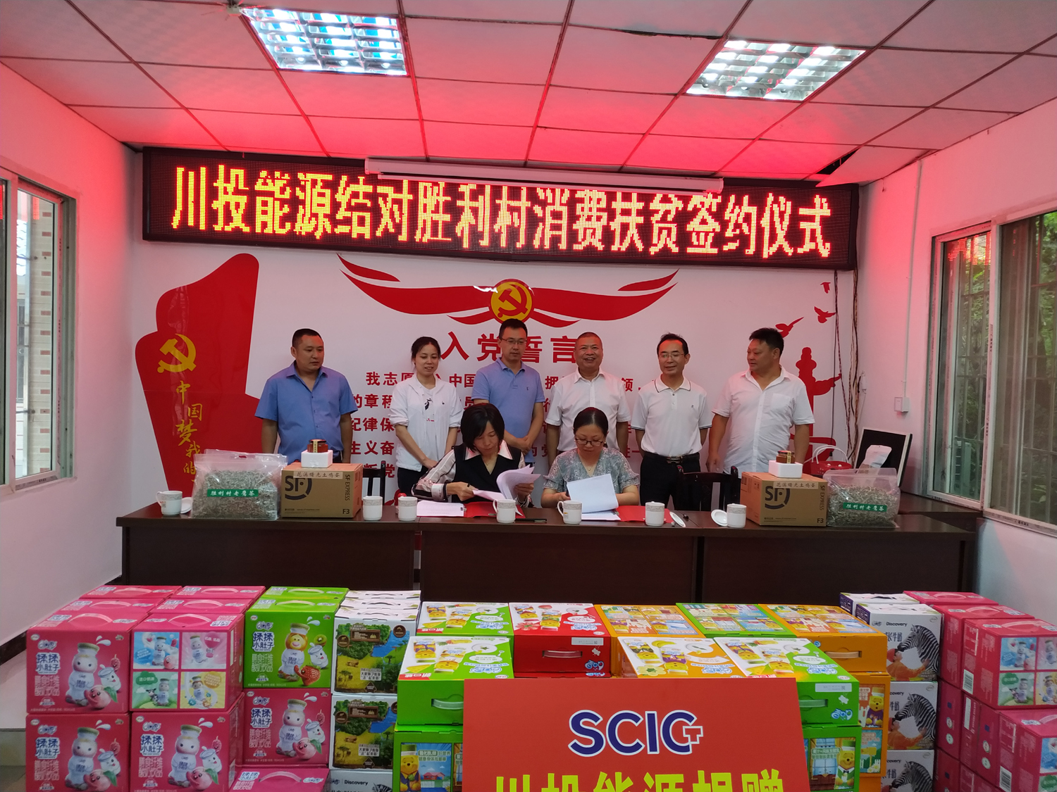 揭牌仪式结束后,杨洪一行来到胜利村村委会,与金口河本地电商(曙光村农村合作社)签订土特产采购协议,用“以购代捐、以买带帮”方式促进“消费扶贫”深入开展。下一步也将倡导所属企业和全体职工扩大“朋友圈”,引导更多的人参与消费扶贫,促进当地群众稳定脱贫。