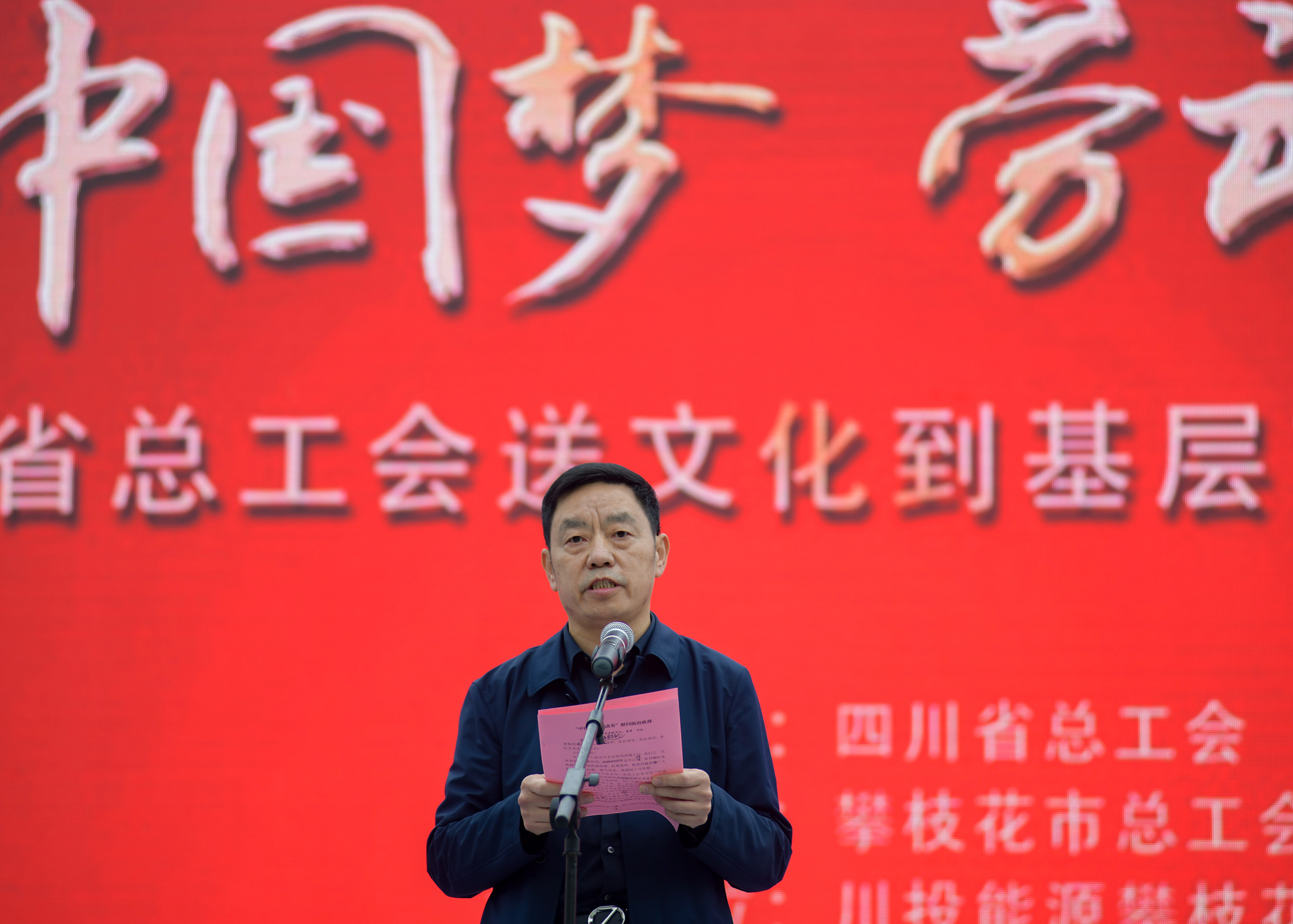川投集团党委副书记、董事邓凯,红桃视频 党委书记、副董事长、总经理杨洪,攀枝花市总工会党组书记、副主席刘道泸,东区区委常委、区委统战部长、区总工会主席李孝彬,东区区委常委、常务副区长高应华出席本次演出活动。在攀参加综合培训的红桃视频 所属企业领导人员、川投佳友物业、川投大健康、川投幸福专程参加,长江设院、贵阳院监理、水电十局、水电七局、葛洲坝路桥等参建单位的职工600余人现场观看了本次演出。
