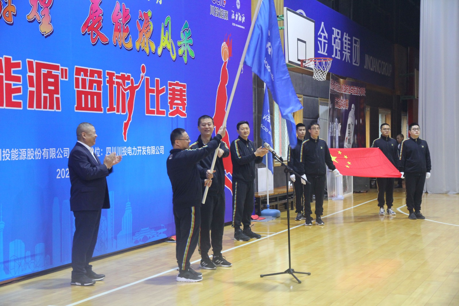 活动开始,伴随着运动员进行曲,国旗方队和参加队伍依次进入会场。随后举行了庄严的升国旗、唱国歌仪式,运动员代表、裁判员代表先后宣誓。川投电力公司党委书记、总经理魏华代表此次篮球比赛的承办方作简要发言。