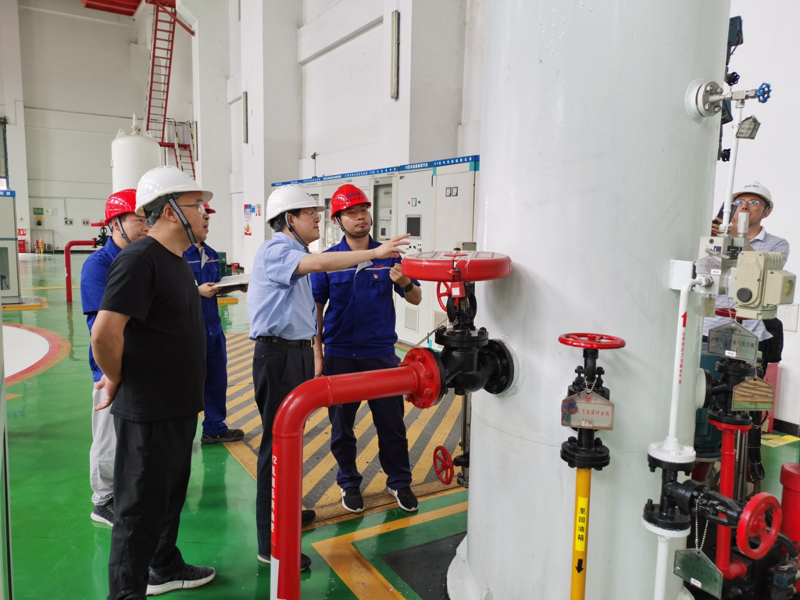 杨平一行先后前往脚基坪电站大坝及发电厂区实地检查指导,检查组对大坝水库调度情况、应急电源保障、防汛物资储备、闸门启闭设备与电站的压力容器特种设备、发电机主设备及GIS设备进行了专项检查。