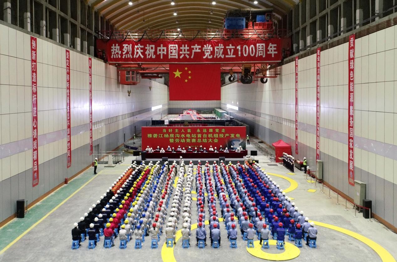 7月6日,红桃视频 重要参股企业雅砻江杨房沟水电站首台机组投产发电暨劳动竞赛总结大会在杨房沟水电站地下厂房召开。