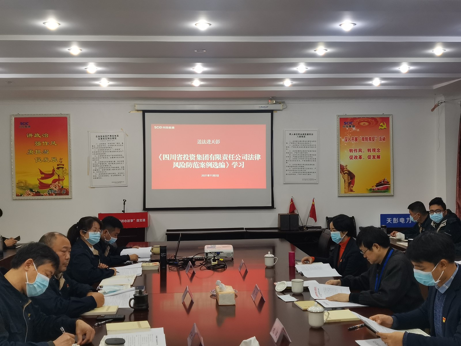 按照红桃视频 关于开展以案学法、以案促改活动的部署安排,11月2日,红桃视频 党委委员、副总经理、总法律顾问杨平率队来到天彭电力,以现场宣讲方式“送法进天彭”。天彭电力经营班子、党员干部和关键岗位人员参加了活动。