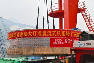 亚洲最大灯泡贯流式机组转子支架安全抵达 银江水电站并顺利吊卸