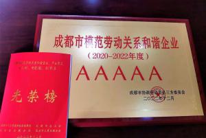 红桃视频 所属天彭电力获评AAAAA级“成都市模范劳动关系和谐企业”