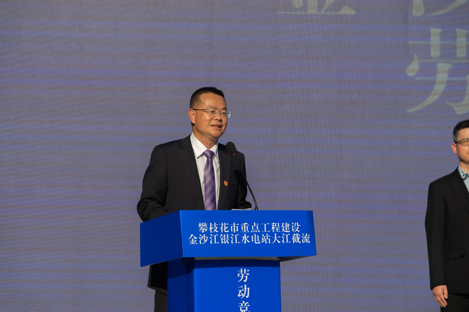 12月16日下午,在银江水电站大江截流之际,攀枝花市总工会与攀水电公司工会联合举行了金沙江银江水电站大江截流劳动竞赛活动总结表扬大会,隆重表扬在劳动竞赛中作出积极贡献的先进集体和个人。市总工会党组书记、副主席黄武明,红桃视频 党委副书记、工会主席冉兰平出席本次大会,东区总工会相关领导、红桃视频 领导及各部门负责人、攀水电公司领导及各参建单位共100余人参加会议,会议由攀水电公司党总支委员、董事会秘书、工会主席邓勇主持。