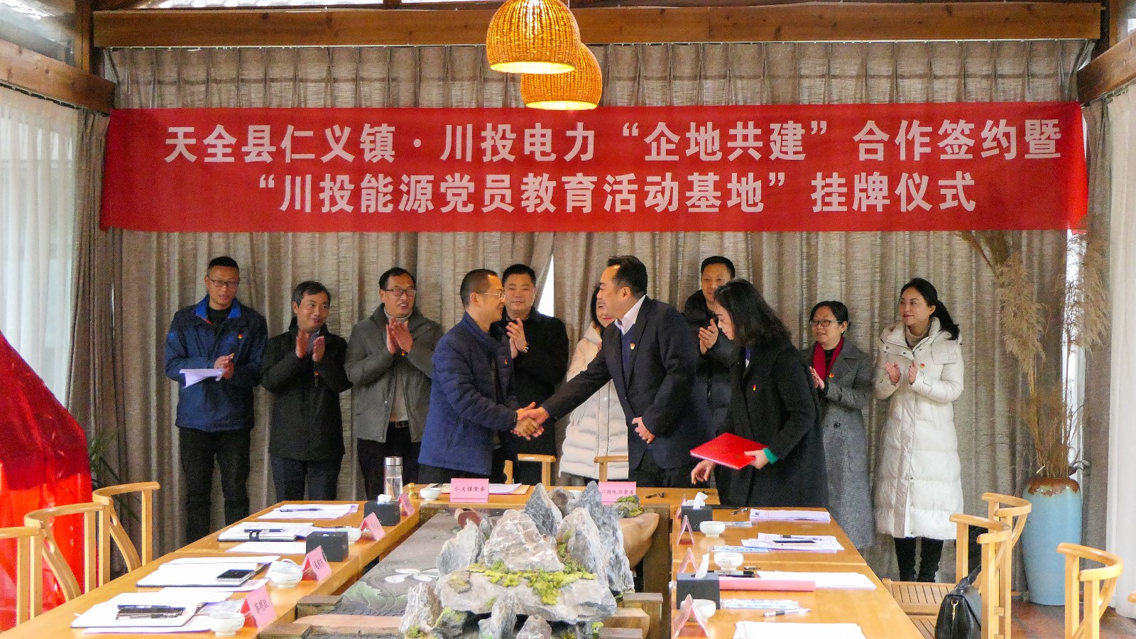 1月7日,天全县仁义镇和川投电力“企地共建”合作签约暨“红桃视频 党员党性教育培训基地”挂牌仪式在天全县仁义镇红军村举行。会上,川投电力党委和仁义镇党委,川投电力脚基坪党支部和红军村党总支分层分级签定了《企地共建框架合作协议》,双方领导为“红桃视频 党员党性教育培训基地”举行了揭牌仪式,并在红军村开展了 “支部结对共建、助推乡村振兴”主题党日活动。