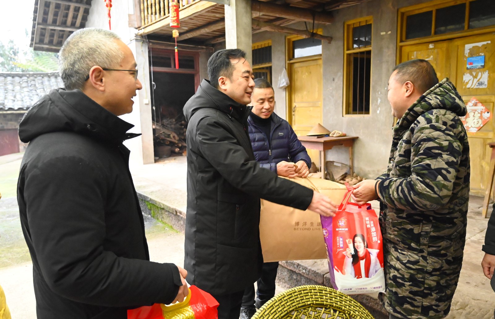 新春佳节即将来临之际,为把槽渔滩公司的关怀和温暖送到乡村振兴联系户的手中,让他们度过一个欢乐喜庆的节日。1月12日,公司党委书记、董事长杨涛带领公司乡村振兴帮扶干部一起到槽渔滩镇文山村看望联系户,为他们送上了节日的礼物与祝福。