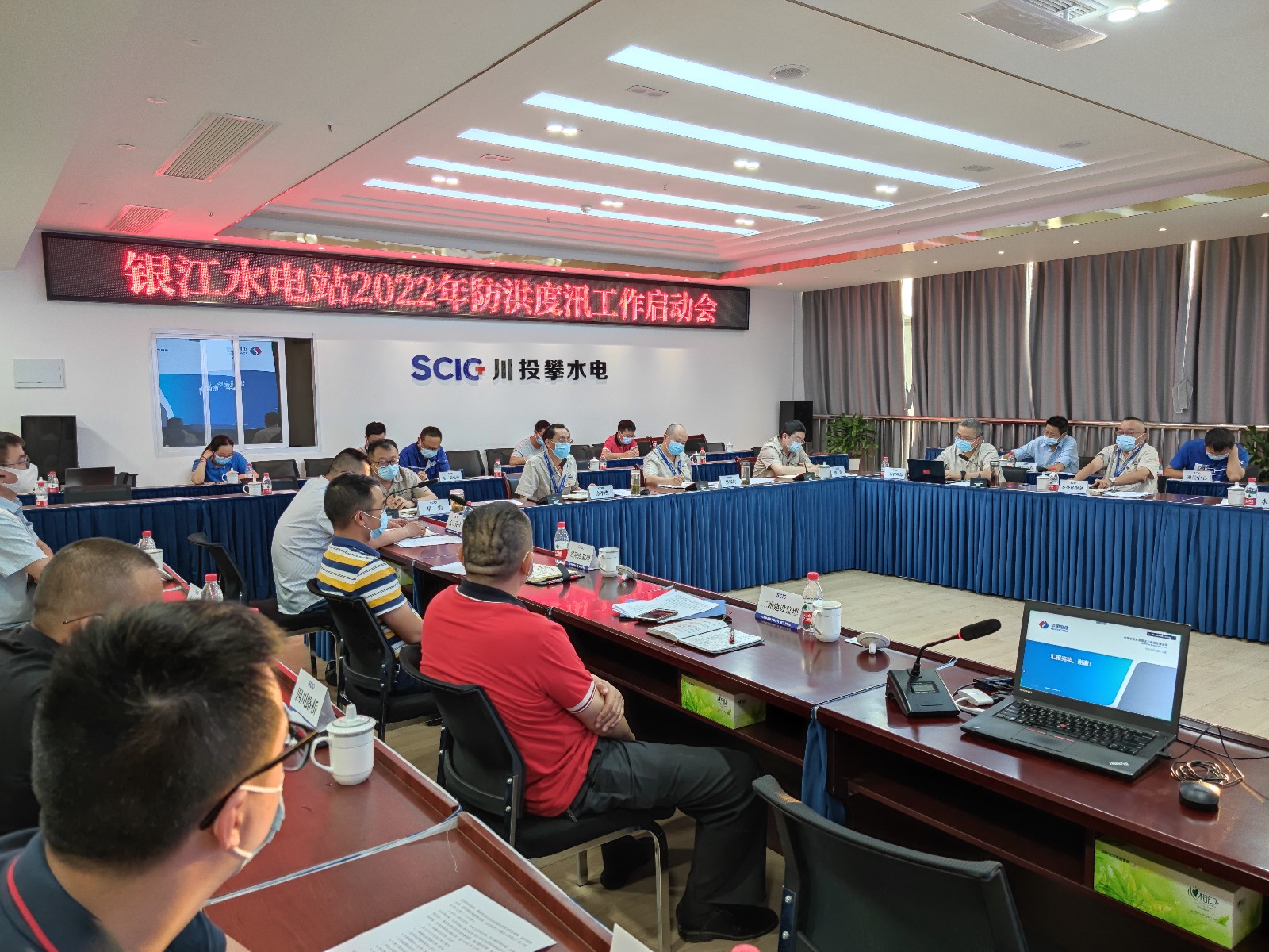 下午,公司组织召开了2022年防洪度汛工作启动会,会议由公司党总支委员、总经理、防汛领导小组组长吴巍屿主持。会上,公司党总支委员、董事会秘书、工会主席、防汛领导小组副组长邓勇,公司总经理助理、防汛领导小组成员唐伽分别宣贯了近期四川省防洪度汛、防汛减灾相关文件精神;公司工程管理部经理、防汛领导小组成员严瑞平汇报了公司2022年防洪度汛准备工作情况,并对防洪度汛工作作了具体安排;各参建单位逐一汇报了防洪度汛组织机构、值班安排、度汛形象面貌、地灾隐患治理、防洪度汛应急演练、防汛物资落实等情况;会议认真查找度汛准备工作中的不足,制定相应处置措施,压实防洪度汛责任,安排部署防汛、防地灾重点工作。