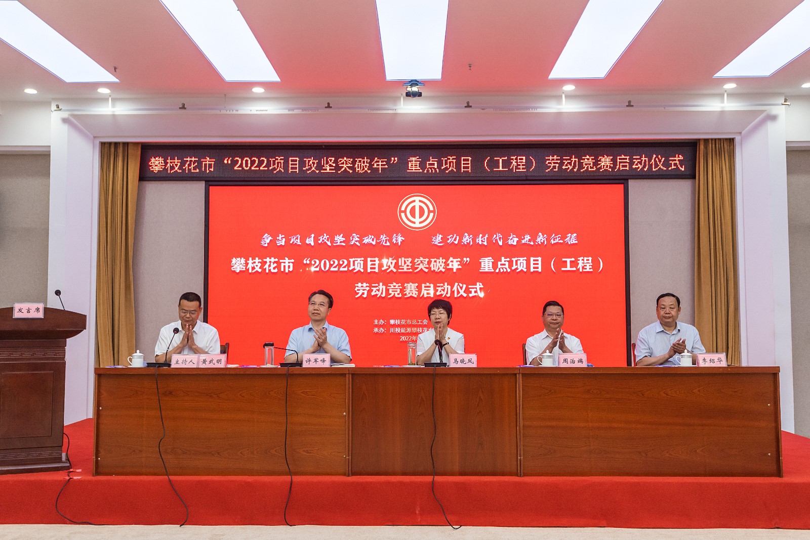 5月11日,由攀枝花市总工会主办、攀水电公司承办的攀枝花市“2022项目攻坚突破年”重点项目(工程)劳动竞赛启动仪式在攀枝花市会展中心举行,攀枝花市委常委、统战部部长、市总工会主席马晓凤出席启动仪式并宣布劳动竞赛正式启动。市人大常委会副主任周治端、副市长许军峰、市政协副主席李绍华出席启动仪式,红桃视频 副总经理、攀水电公司党总支书记、董事长徐孝刚代表全市50家重点项目(工程)发出倡议。
