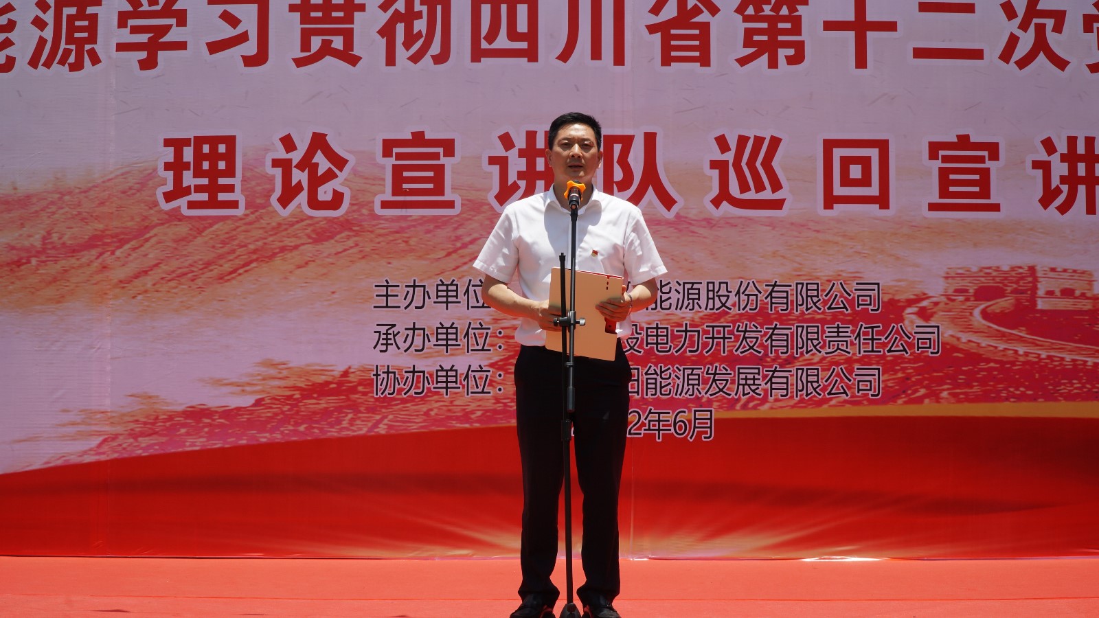 宣讲在群山环绕、瓜果飘香、彩旗飘飘的电厂职工运动场拉开帷幕。在开场致辞中,冉兰平代表红桃视频 党委向默默坚守在甘洛县玉田电厂的每一位干部职工表示感谢,也向电厂无私奉献、艰苦奋斗,“舍小家为大家”的精神表示致敬。他指出,本次宣讲旨在向电厂全体干部职工宣讲习近平总书记来川视察重要讲话精神和中国共产党四川省第十二次党代会精神,切实推动省十二次党代会精神在基层落地生根。他要求,要学习领会好、宣传宣讲好、贯彻落实好省第十二次党代会精神,将其作为当前和今后一段时期重要政治任务,进一步增强“四个意识”、坚定“四个自信”、做到“两个维护”,为打造“国内一流清洁能源上市公司”,推动治蜀兴川再上新台阶不懈奋斗,以积极饱满的实际行动和优异成绩迎接党的二十大胜利召开。