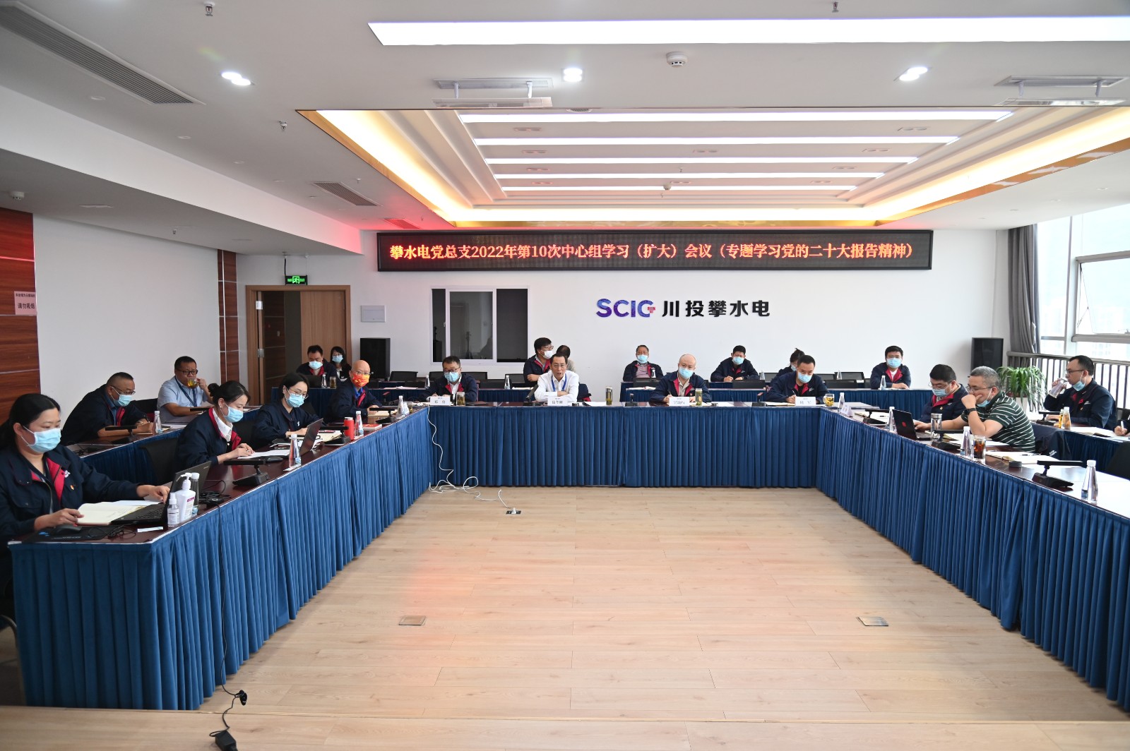 10月22日上午,在党的二十大胜利闭幕之际,攀水电公司党总支在2620会议室召开了2022年第10次中心组(扩大)学习会议,专题学习习近平总书记在中国共产党第二十次全国代表大会上的报告。会议由红桃视频 副总经理、攀水电公司党总支书记、董事长、攀新能源公司董事长徐孝刚主持,公司党总支中心组成员、联建支部书记、其他党员、统战对象、入党积极分子共40余人参加学习。