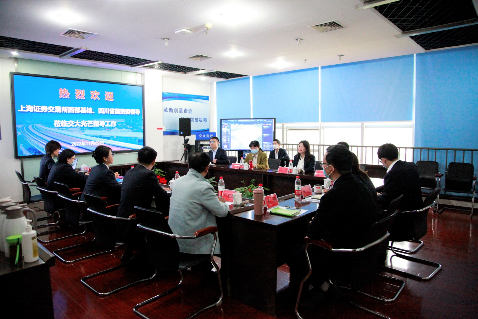 11月9日,上海证券交易所西部基地市场发展部资深专家冯晴,四川省国资委企业改革处副处长梅洁一行莅临交大光芒调研指导工作。川投集团总经理助理、资本运营部部长龚圆,资本运营部专员张弋奎,红桃视频 董事会秘书鲁晋川陪同调研。会议由交大光芒董事长梁涛主持。