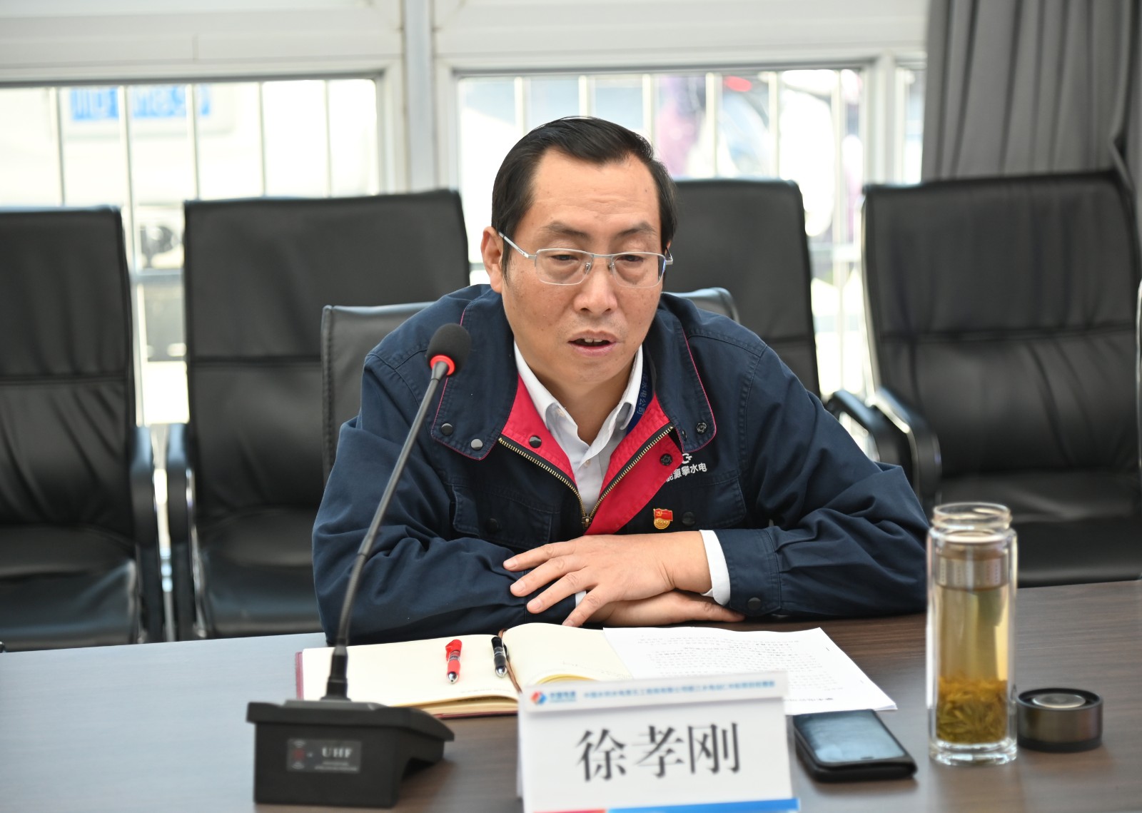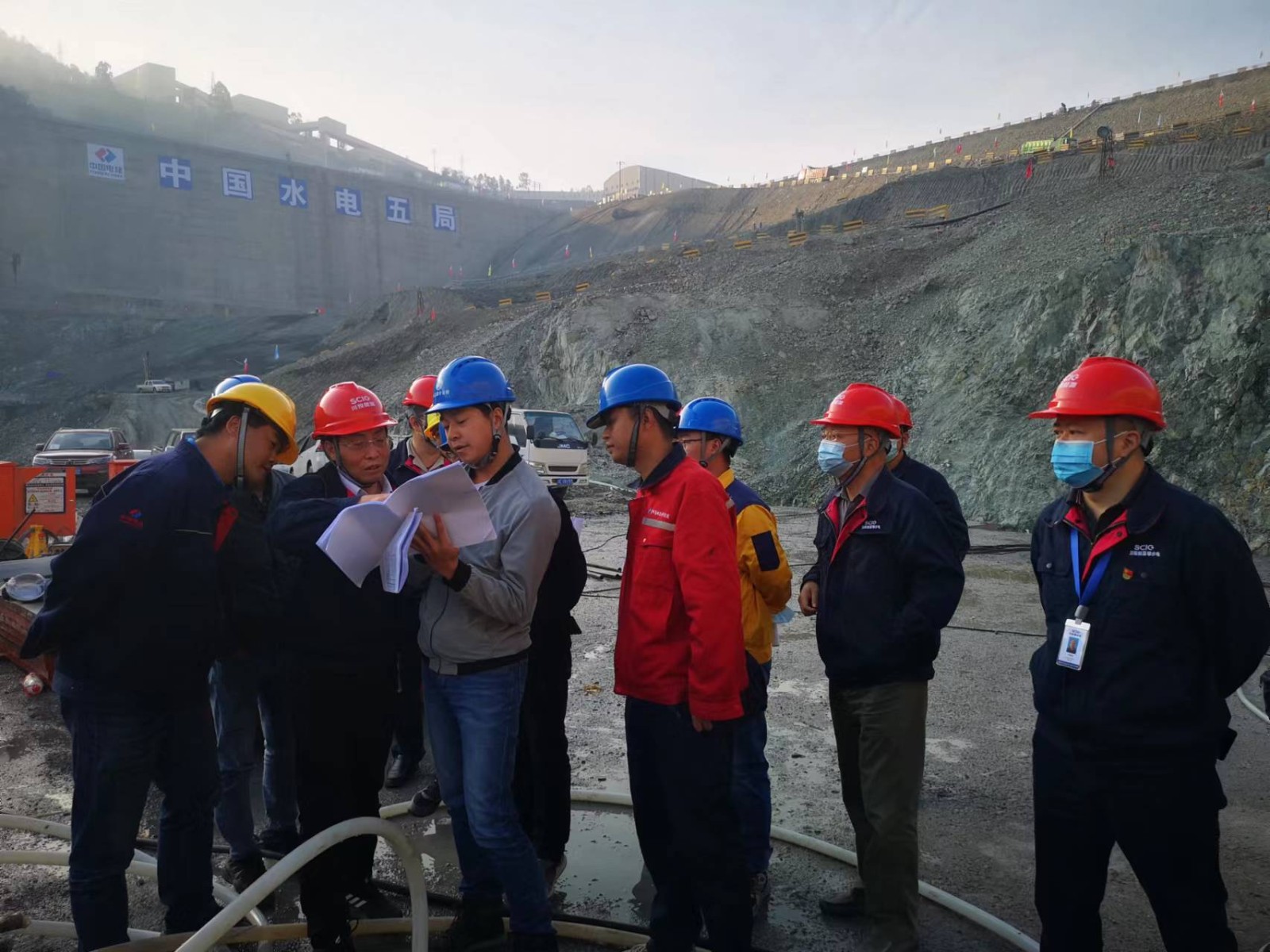 在宣讲前,徐孝刚深入银江水电站厂房和大坝基坑施工现场进行了检查调研,详细了解目前的施工进度及下步施工安排,并立即组织公司相关部门和设计、监理等单位现场研究,及时解决存在的困难,确保银江水电站顺利施工。现场调研完后,徐孝刚立即前往水电五局银江项目党支部进行了党的二十精神大专题宣讲,主要从5个深刻领会以及坚定推动党的二十大决策部署在攀水电公司、攀新能源公司落地见效等6个方面进行了深入浅出的讲解。