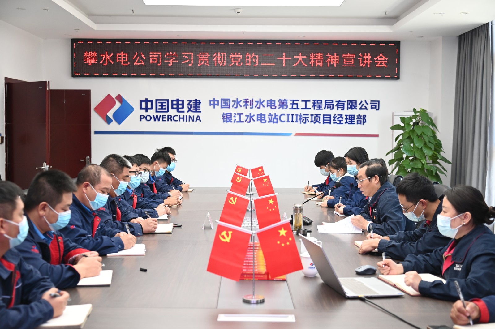 徐孝刚强调,水电五局银江项目党支部是银江水电站建设最重要的联建支部,要把学习贯彻党的二十大精神作为当前和今后一个时期的首要政治任务,大力营造学习宣传党的二十大精神的政治氛围、舆论氛围和社会氛围,自觉在思想上政治上行动上同以习近平同志为核心的党中央保持高度一致,深刻领悟“两个确立”的决定性意义,增强“四个意识”、坚定“四个自信”、做到“两个维护”,确保党有号召,我们有行动,坚决把各项决策部署落到实处,在项目部持续掀起学习党的二十大精神热潮。