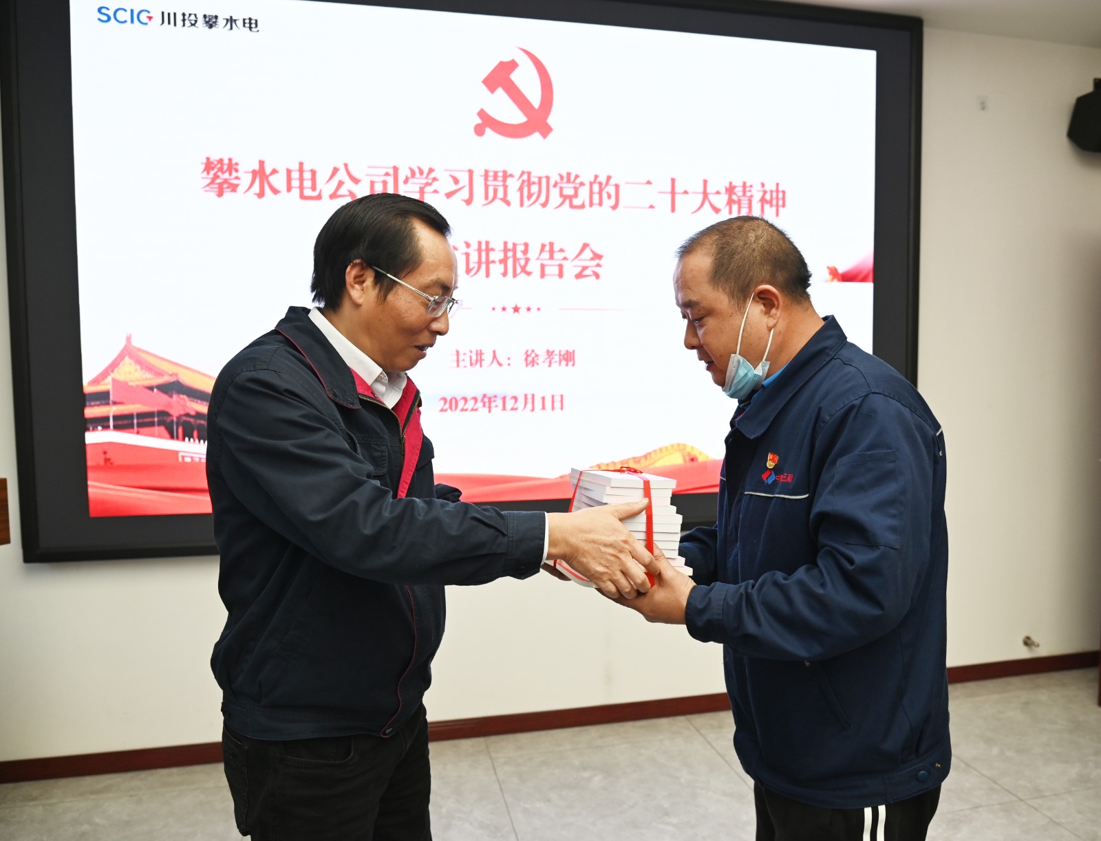 徐孝刚要求,要把广泛开展面向职工群众、一线工人宣讲党的二十大精神作为加强思想政治引领、广泛凝聚民心的重要抓手,结合工程建设实际,切实确保党的二十大精神宣讲更有特色更有活力。要把学习贯彻党的二十大精神与银江水电站工程建设实际相结合,与工程建设重点任务、重要困难、重要目标节点等结合起来,高标准、严要求推进工程建设。宣讲会后徐孝刚向水电五局项目部赠送了《党的二十大文件汇编》口袋书、《党的二十大报告学习辅导百问》《二十大党章修正案问答》等书籍。
