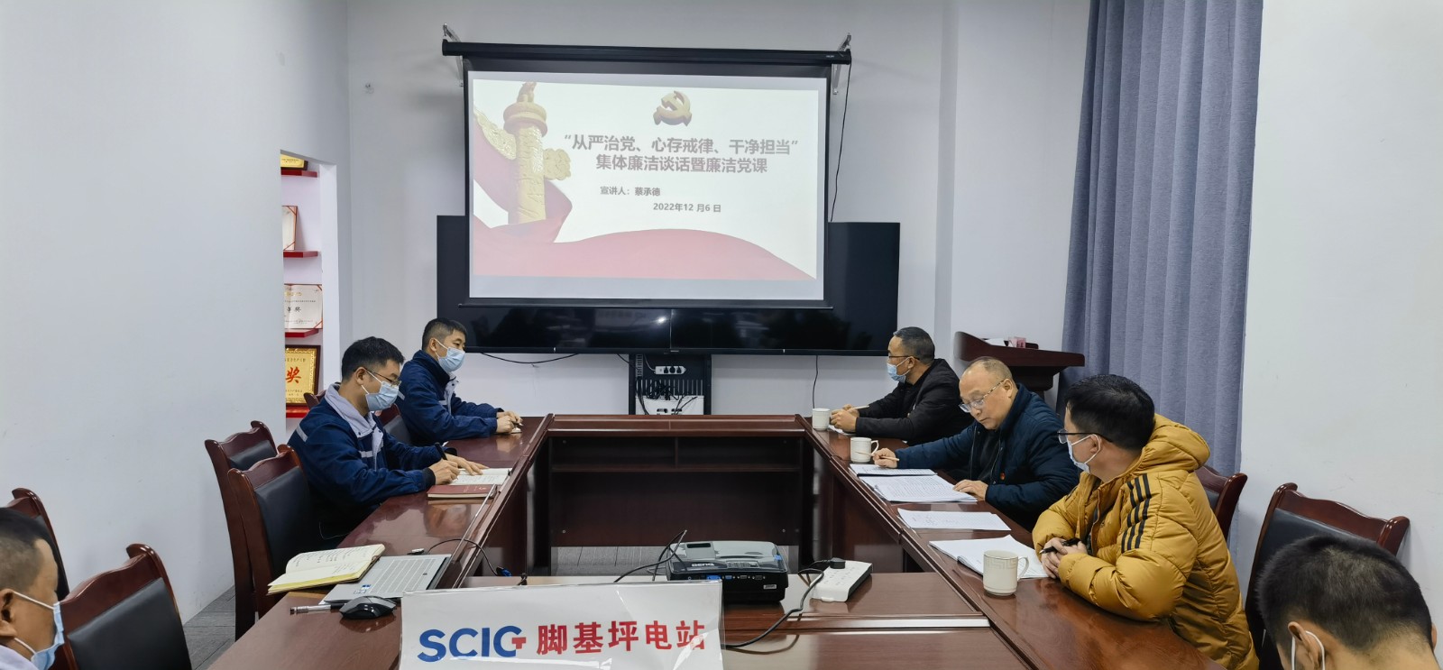 为深入宣传贯彻党的二十大精神,突出把好政治廉洁关,筑牢廉洁防线,坚定不移把党的二十大作出的重大决策部署落地落实,12月6日,川投电力党委副书记、总经理蔡承德为脚基坪电厂全体党员、入党积极分子讲授廉洁党课,并进行集体廉洁谈话。