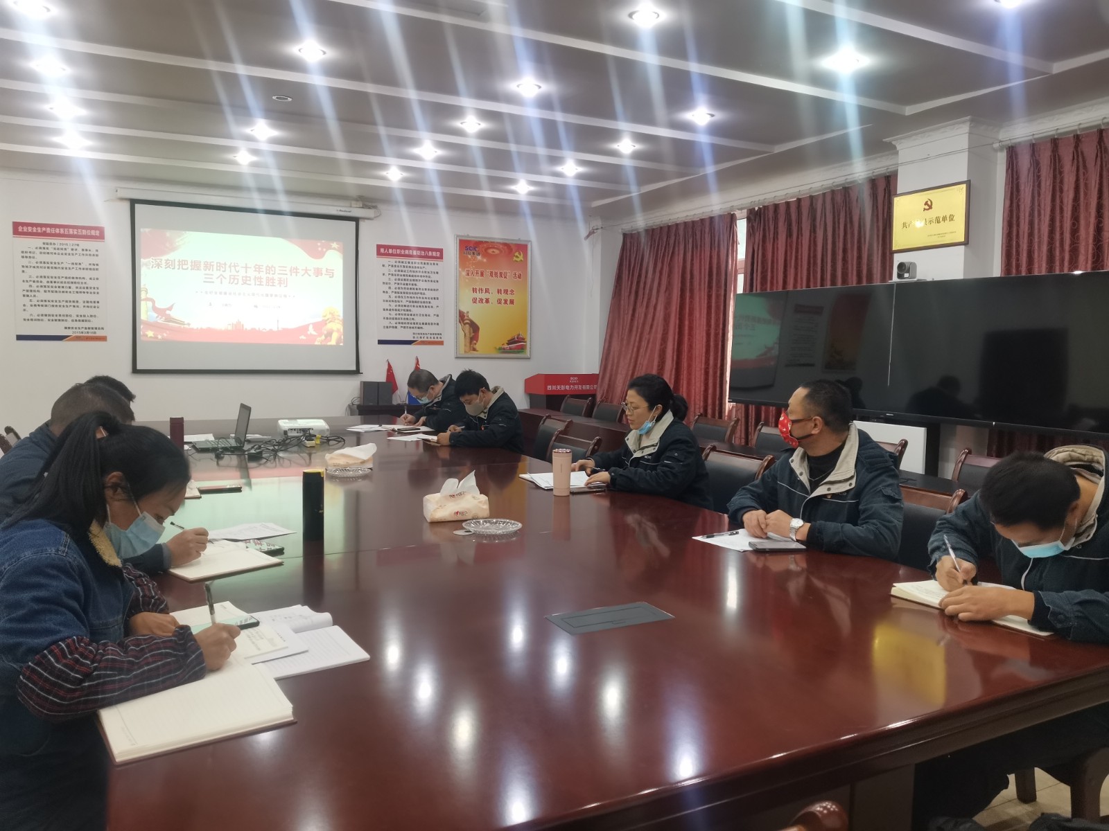 学习会上,公司党总支委员、纪检组长、工会主席汪晓力对党的二十大精神宣讲从“深刻把握新时代十年的三件大事与三个历史性胜利”角度切入,通过对新时代十年中具有深远历史意义的三件大事“迎来中国共产党成立一百周年”“中国特色社会主义进入新时代”“完成脱贫攻坚、全面建成小康社会的历史任务,实现第一个百年奋斗目标”进行阐释解读,指出“这是中国共产党和中国人民团结奋斗赢得的历史性胜利,是彪炳中华民族发展史册的历史性胜利,也是对世界具有深远影响的历史性胜利”,深刻把握新时代“三件大事”“三个历史性胜利”对我们深化对新时代十年伟大变革的重要认识、走好全面建设社会主义现代化国家新征程具有极为重大的意义。汪晓力要求,要进一步弘扬理论联系实际的优良学风,把党的创新理论学习好、宣传好、贯彻好,用党的最新理论武装头脑、指导实践、有力推动公司高质量发展。