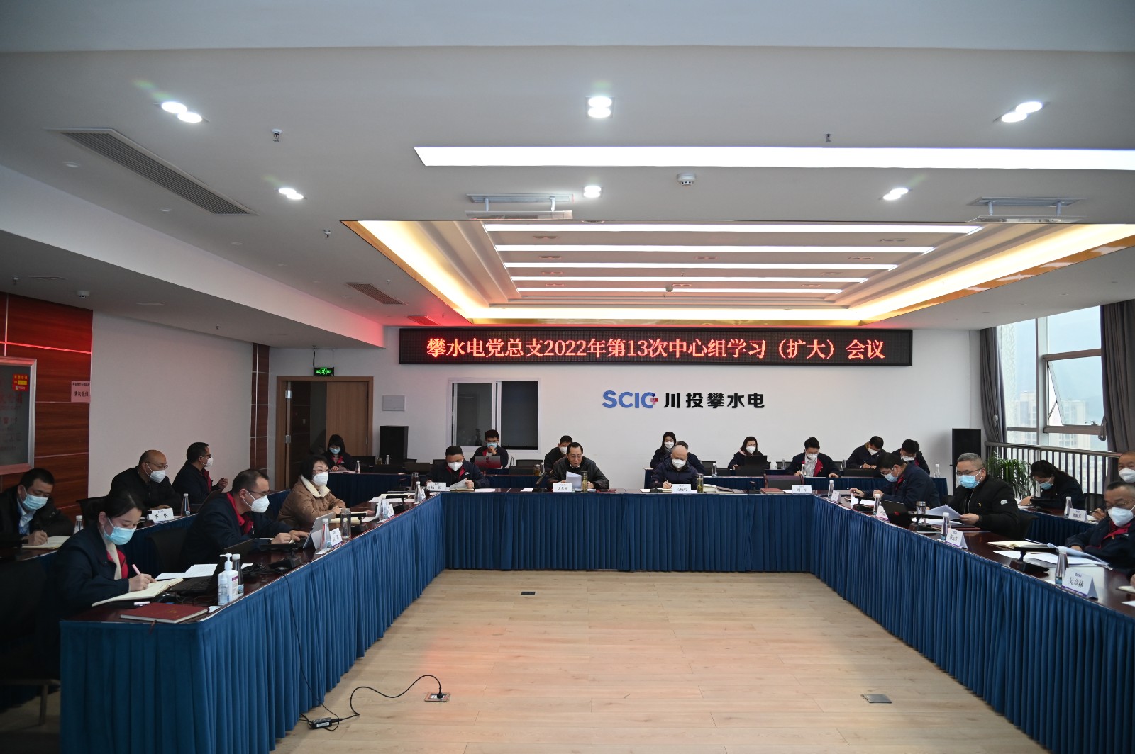 12月31日上午,在辞旧迎新之际,攀水电公司党总支在2620会议室召开了2022年第13次中心组学习(扩大)会议。本次学习主要包括第一议题、二十大专题、省第十二届二次全会、疫情防控、党史学习教育、安全环保、廉政警示教育六个部分,会议由红桃视频 副总经理、攀水电公司党总支书记、董事长、攀新能源公司董事长徐孝刚主持,公司党总支中心组成员、其他党员、中层干部职工、统战对象、入党积极分子共计40余人参加学习,各联建支部在线上参加了学习。