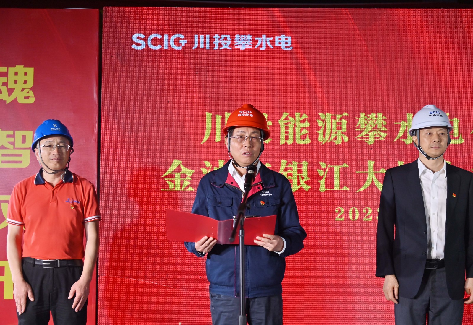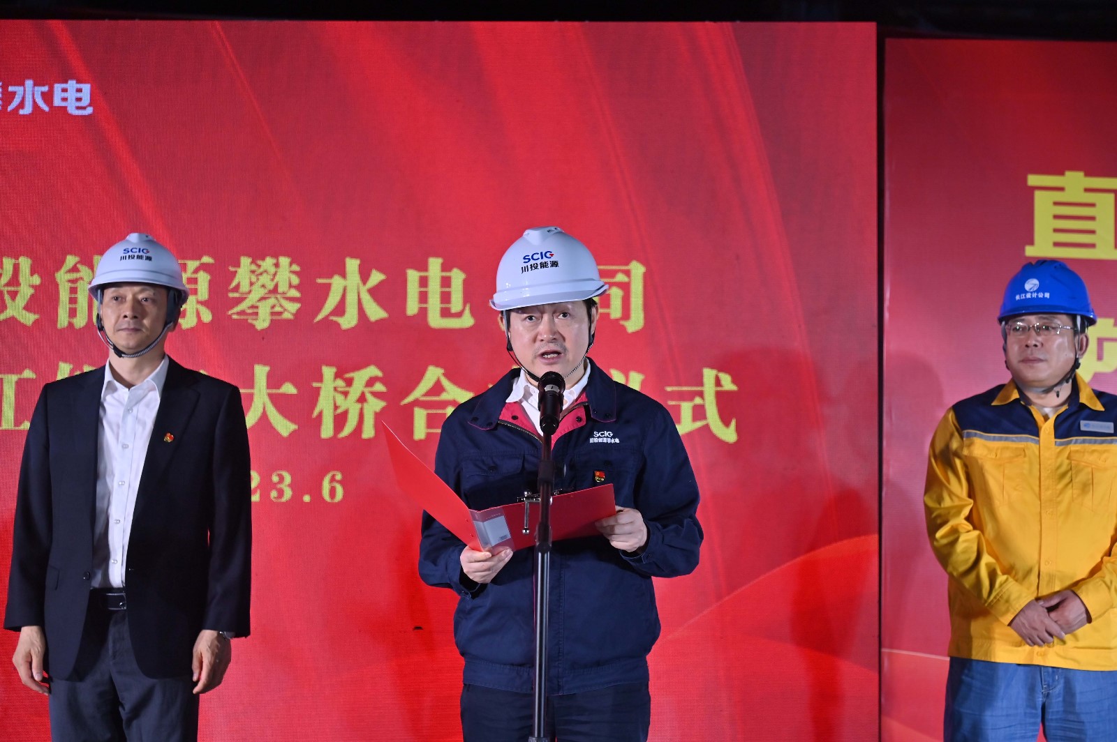 仪式首先由杨平致辞,他对辛苦奋战在银江大桥一线的建设者们致以诚挚的问候和衷心的感谢!他表示:银江大桥自开工以来,在攀水电公司团结带领下,先后克服了材料价格上涨、汛期抢抓桥墩基础施工、疫情考验等重重困难,多措并举确保了各个目标节点按期实现,取得了优异的成绩。希望大家继续以强烈的担当意识和良好的工作作风,扎实做好主题教育各项工作,继续发扬劳动精神、工匠精神,主动作为,攻坚克难,在做好安全环保、防洪度汛、隐患排查、消缺收尾工作的基础上,早日实现银江大桥通车目标。