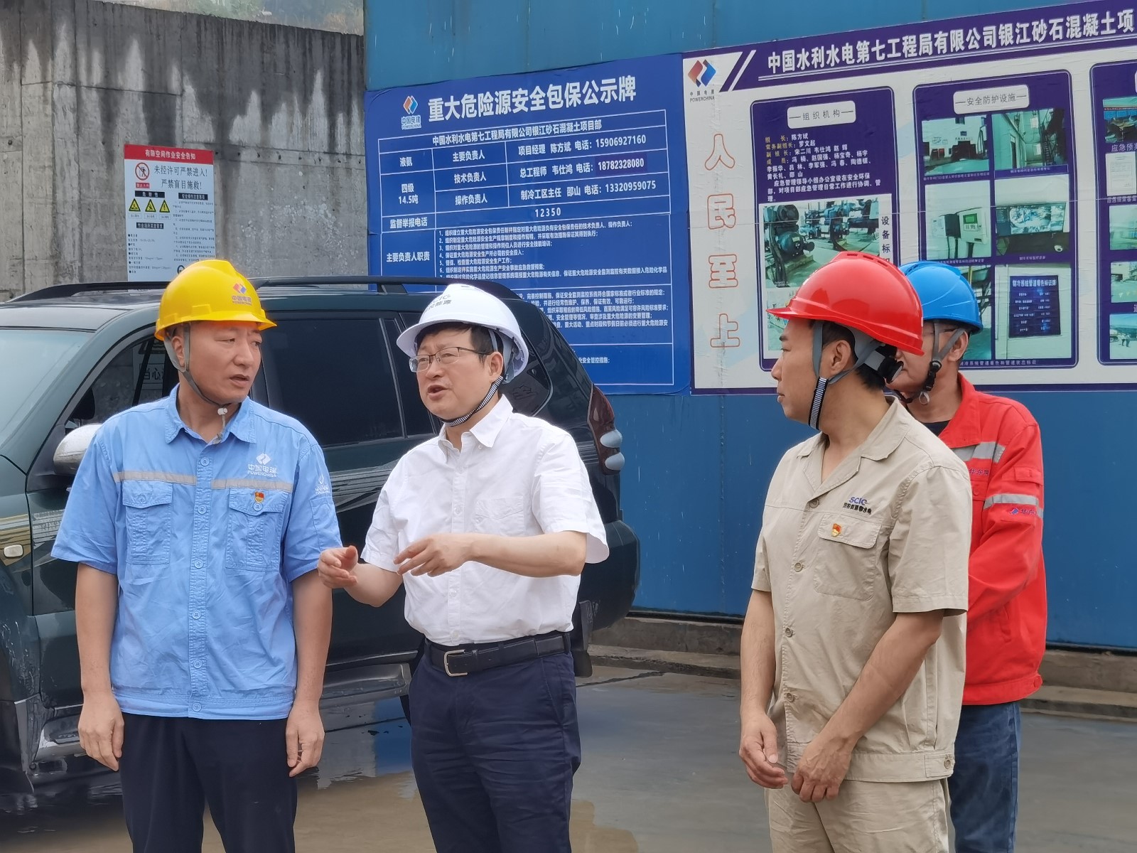杨平一行深入银江水电站施工现场,查看安全风险管控情况,了解工程建设及安全生产情况,结合安全生产强化年、重大事故隐患专项排查整治、防汛减灾等工作,对现场液氨制冷系统等重点部位、重点设备、施工作业面的安全措施落实情况开展督导检查。