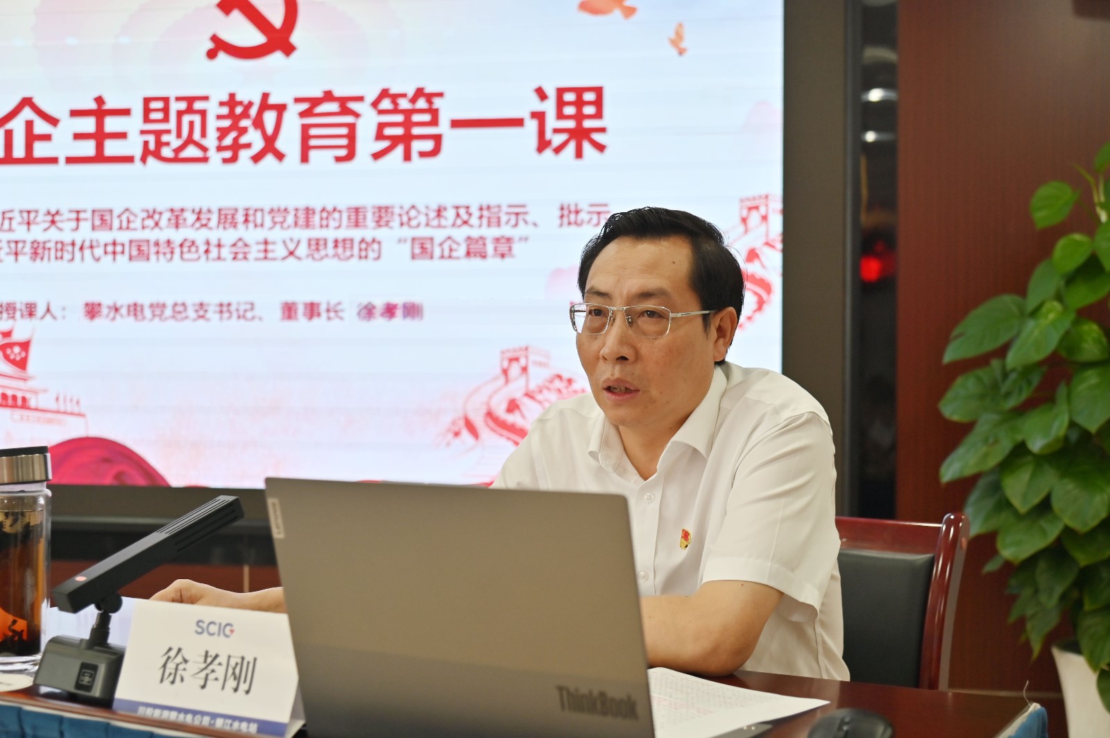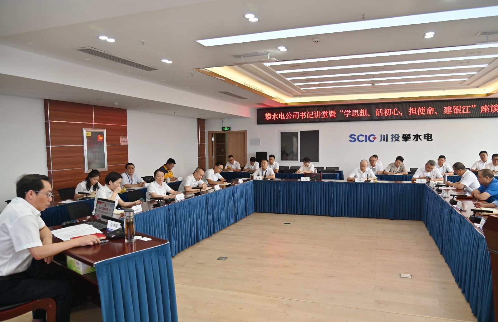 为扎实推进学习贯彻习近平新时代中国特色社会主义思想主题教育走深走实,以思想伟力凝聚起干事创业的强大动力,7月8日,攀水电党总支组织开展书记讲堂暨“学思想、话初心,担使命、建银江”座谈会,由红桃视频 副总经理、攀水电党总支书记、董事长徐孝刚讲授专题党课,公司全体党员、非党中干、统战对象、青年职工,联建支部书记、党员代表共计40余人参加。