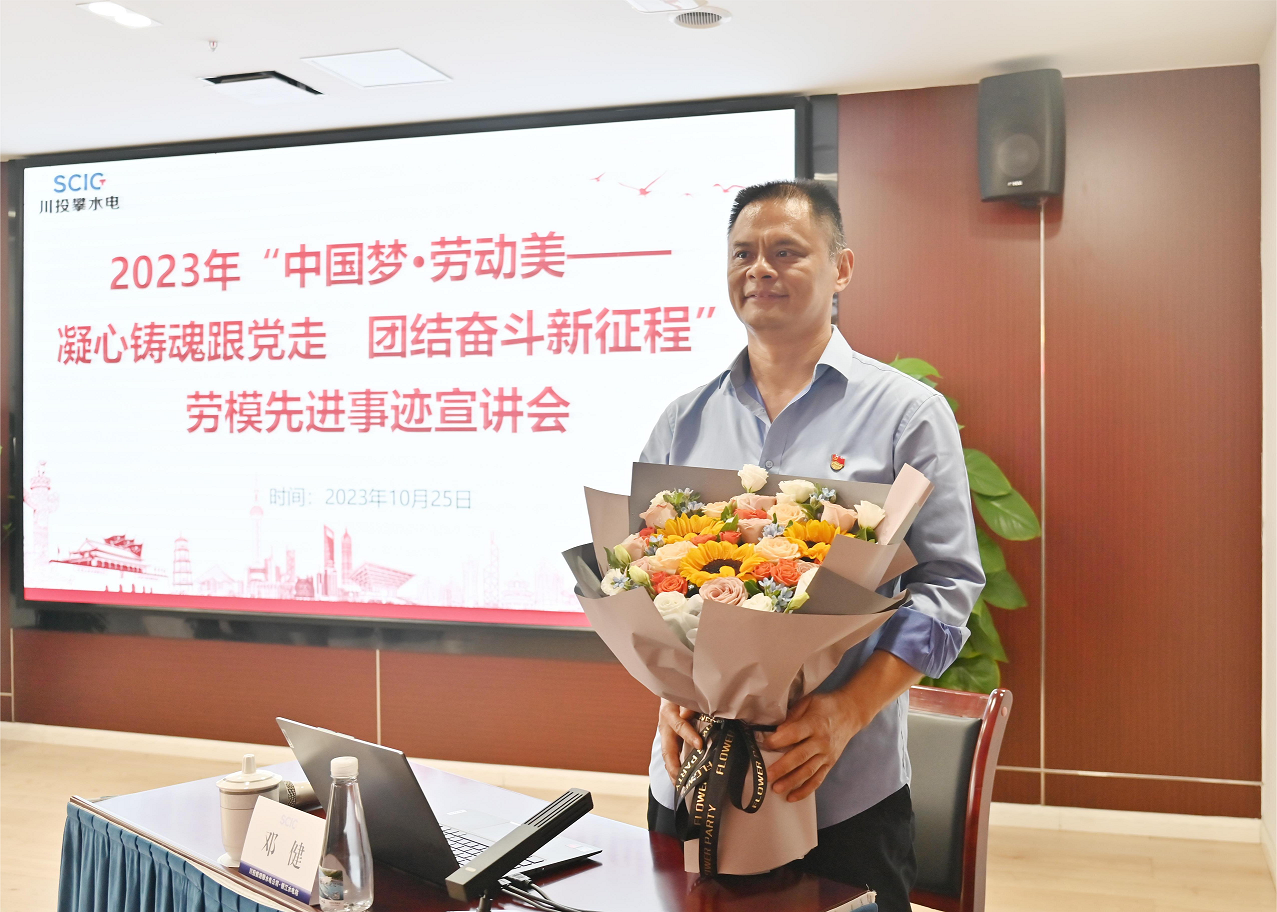鲜花献劳模,匠心永流传。宣讲会后,公司职工代表将一捧热情洋溢的鲜花送到邓健手中,向劳模献上崇高的敬意和温暖的慰问。通过聆听劳模的宣讲,与会职工纷纷表示受益匪浅、深受鼓舞,将以先进典型为榜样,积极学习劳模工匠不怕苦、不怕累、勇于奋斗、敢于争先的榜样精神,把党的二十大精神转化为干事创业的强大动力,以更加昂扬的奋进姿态,切实做好本职工作,努力为银江水电站建设和公司高质量发展做出力所能及的贡献。下一步,公司工会将以深入学习宣传党的二十大精神为契机,以大力弘扬劳模精神、工匠精神为抓手,继续组织劳模宣讲,将劳模精神和先进事迹带到职工身边,送进职工心中,激励和动员广大职工凝聚劳动热情、激发创造活力、奋力建功新时代。