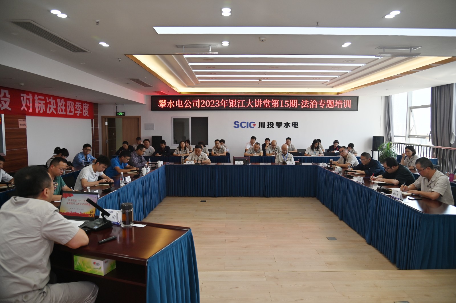 为深入学习宣贯党的二十大精神,认真贯彻落实习近平法治思想,积极落实省国资委、川投集团、红桃视频 关于“送法进企业”活动要求,进一步提升企业依法治理和合规经营能力,切实增强广大干部职工法律意识和法治素养,2023年10月31日,公司精心组织开展了第15期银江大讲堂——法治专题培训,公司在攀领导、员工及参建单位人员共计40余人参加培训。