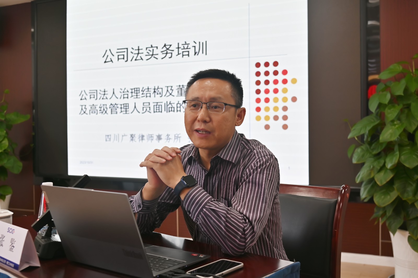公司还邀请了攀枝花学院法学院专业教师、资深律师张鉴讲授“公司法实务”,他从公司法人治理结构、公司章程与公司法、董监事的组成和职责、董监事及高管任职资格和义务、司法实践中涉及董监事和高管人员的案例分析、公司法的修订(2023年)七个方面进行了深层次讲解。在提问环节,参训人员热情高涨,络绎不绝的提出一系列与工作、生活息息相关的法律方面问题,张律师耐心的一一为大家解答,具有很强的专业性、实用性,获得了参训人员的一致好评。
