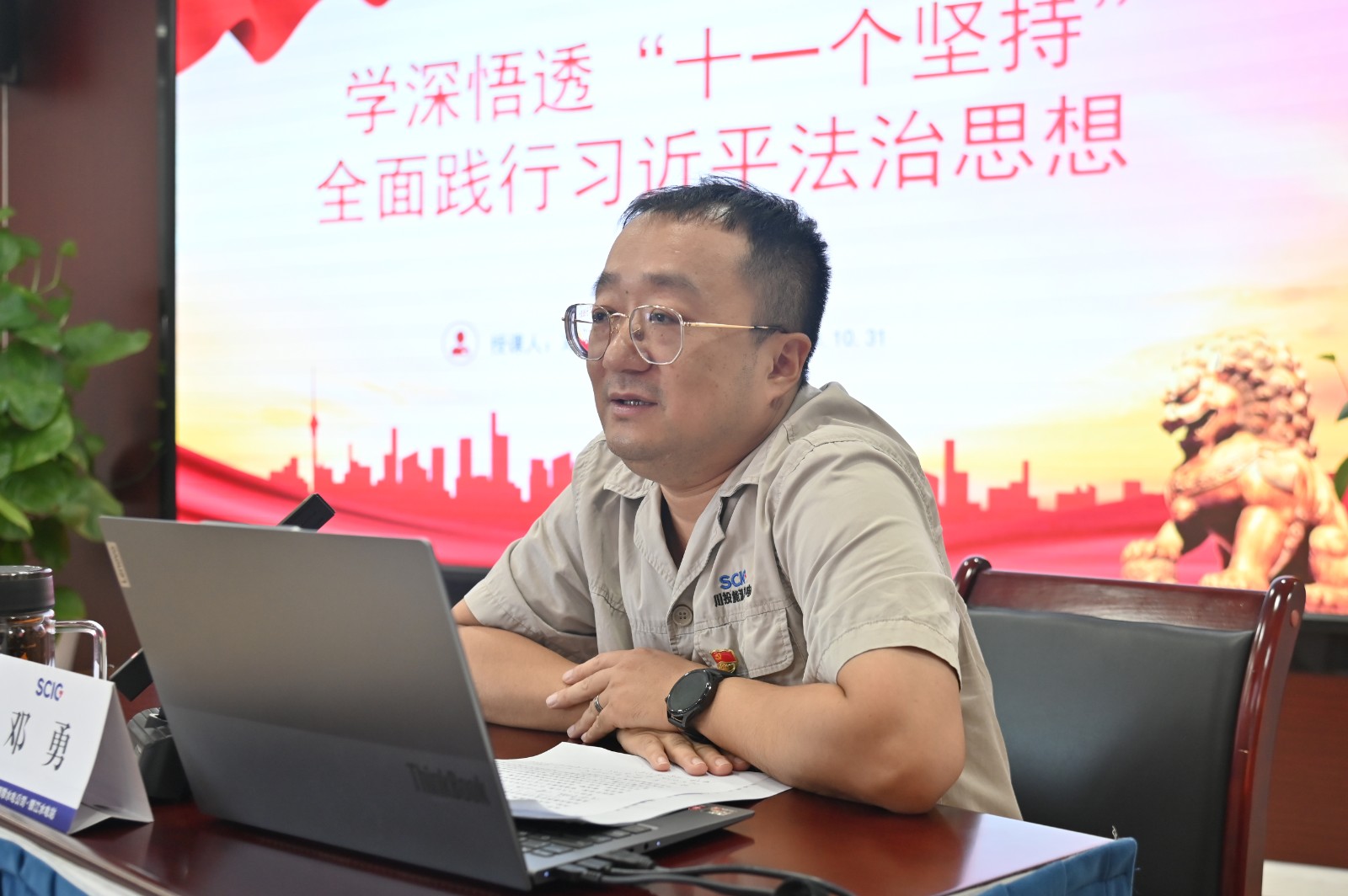会上,公司党总支副书记、董事会秘书、工会主席邓勇以“学深悟透‘十一个坚持’,全面践行习近平法治思想”为题,从习近平法治思想的核心理念、总体部署、关键举措、重要成果四个方面做了系统阐述,详细解读了学深悟透“十一个坚持”的内在逻辑和丰富内涵,进一步深化了公司员工对习近平法治思想的理解和认识。