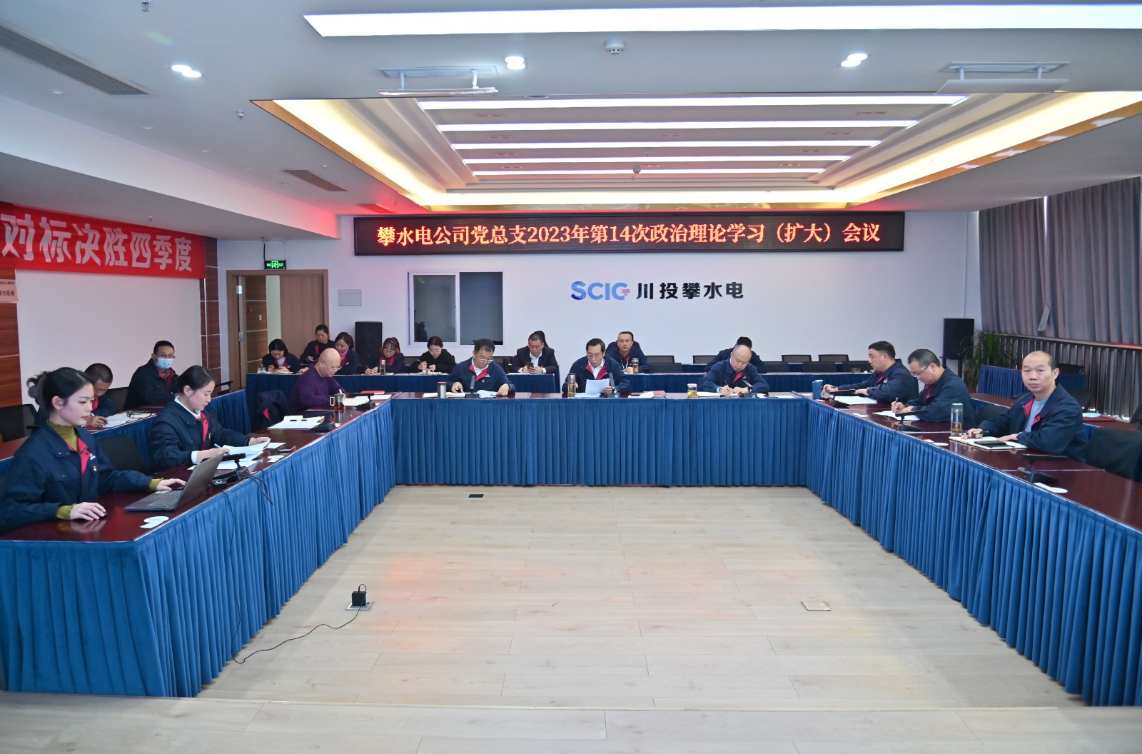 12月23日,攀水电党总支在2620会议室召开了2023年第14次政治理论学习(扩大)会议,会议由红桃视频 副总经理、攀水电公司党总支书记、董事长徐孝刚主持,党总支政治理论学习会成员、各部门负责人、其他党员、统战对象、入党积极分子共30余人参加学习。