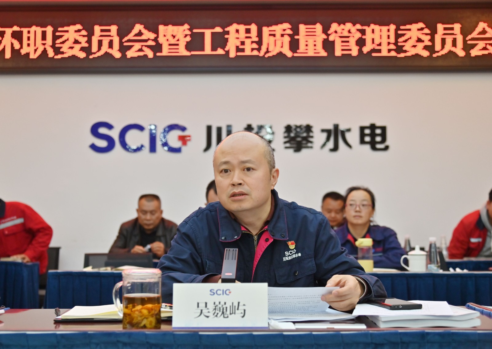 随后,吴巍屿对2023年安全、环保、质量管理工作进行总结评价,并对2024年安全、环保、质量重点工作进行强调,提出相关工作要求。他指出,2024年是银江水电站全面冲刺首台机组发电的关键之年,大坝厂房混凝土浇筑、机电金结设备安装全面提速,现场施工作业环境将越来越复杂,交叉作业情况将进一步凸显,现场质量控制和安全管理难度将进一步增加,公司各部门、各参建单位要加强沟通协调,高度重视技术、质量管理工作,落实落细质量管控各项工作举措,强化重点工作、关键环节管控,助力工程建设高质量、高速度推进。