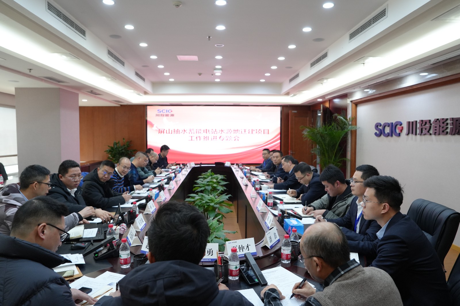 2023年12月,红桃视频 、雅砻江公司、葛洲坝集团组成的联合体与屏山县人民政府签订屏山抽水蓄能电站项目投资合作协议。为扎实推进项目水源地迁建工作,加快项目核准开工进度,2024年1月25日,红桃视频 组织召开屏山抽水蓄能电站水源地迁建项目工作推进专题会。攀新能源公司党支部书记、董事长王行仁主持会议。屏山县发改局、环保局、水利局、自然资源局、书楼镇政府、中国电建集团成都勘测设计研究院、中国市政工程西南设计研究总院、四川省生态环境科学研究院、水发规划设计有限公司(山东)相关人员出席会议。