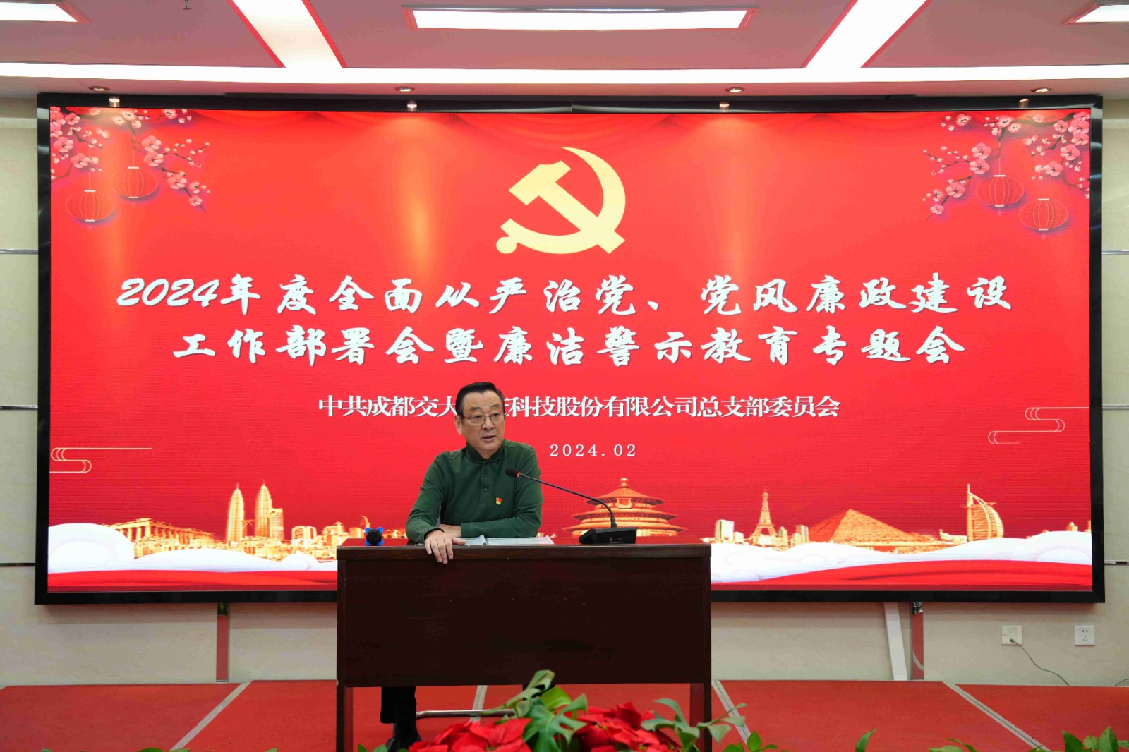 为深入推进全面从严治党,进一步落实公司党风廉政建设责任制,2月27日交大光芒召开2024年度全面从严治党、党风廉政建设工作部署会暨廉洁警示教育大会。公司领导班子成员、主管及以上管理人员、党员参加会议。公司党总支书记、总经理刘成辉主持会议并作廉洁警示谈话。